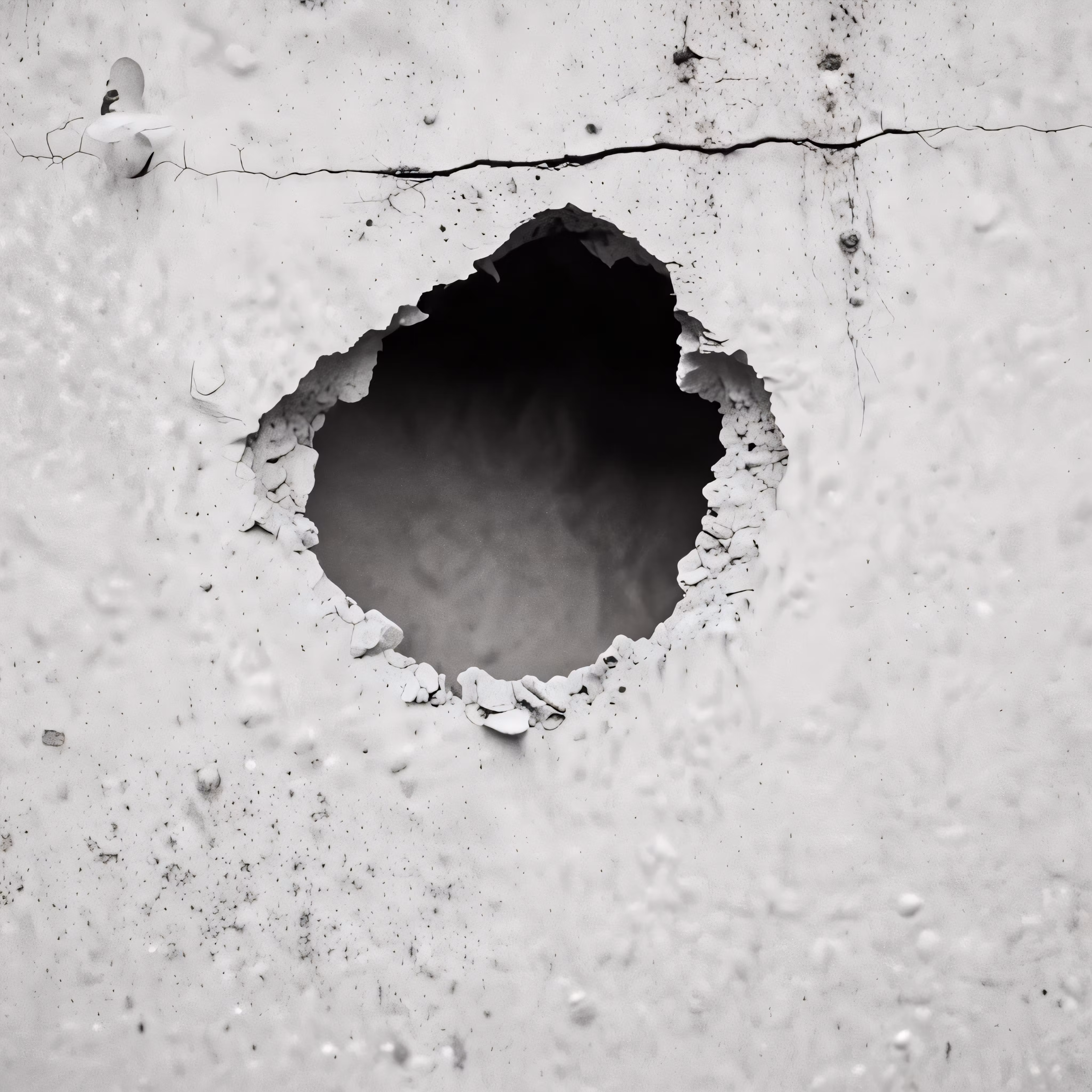 High resolution picture, free to use, a hole is visible in the side of a cement wall