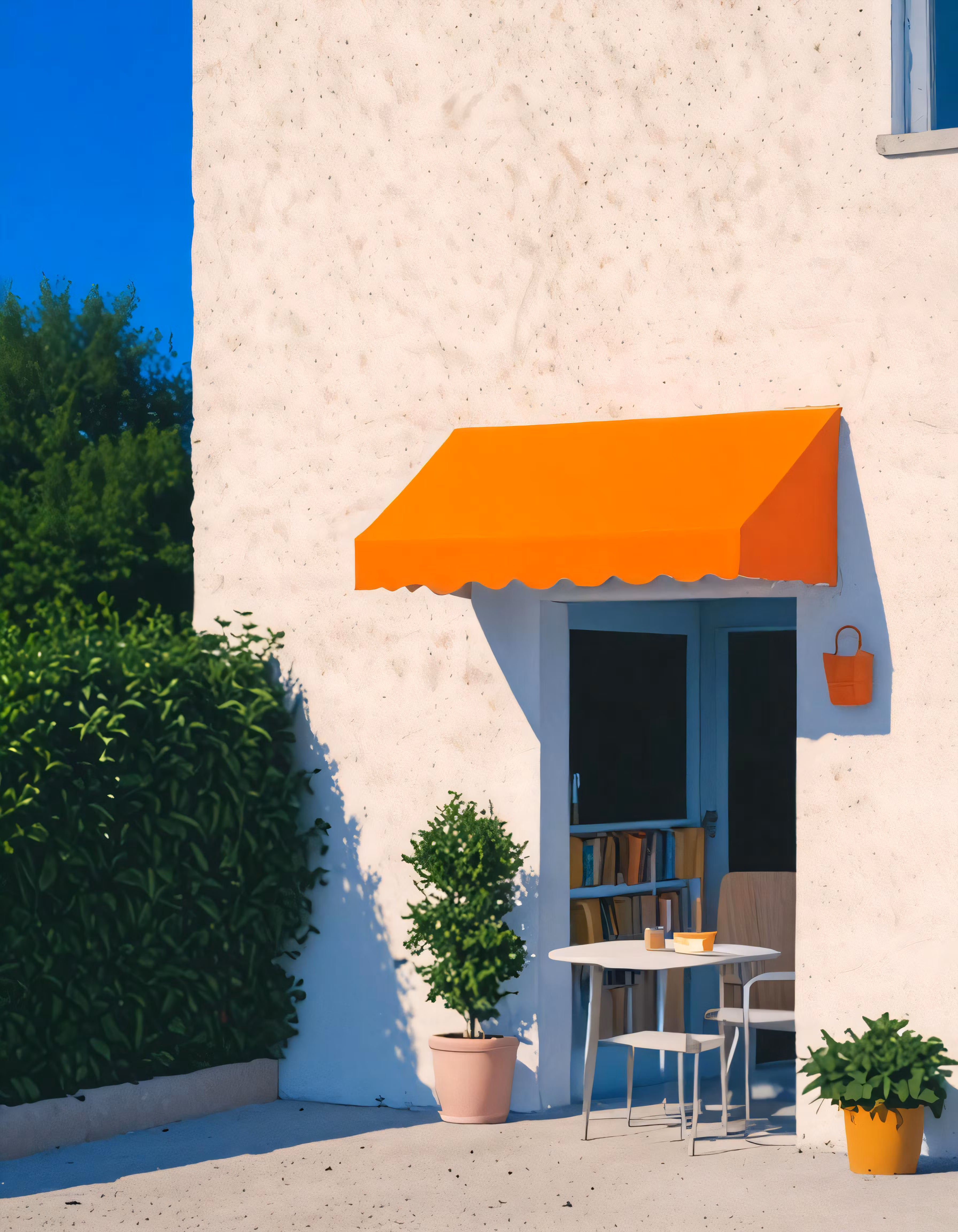 High resolution picture, free to use, a home is shown with potted plants and a small table