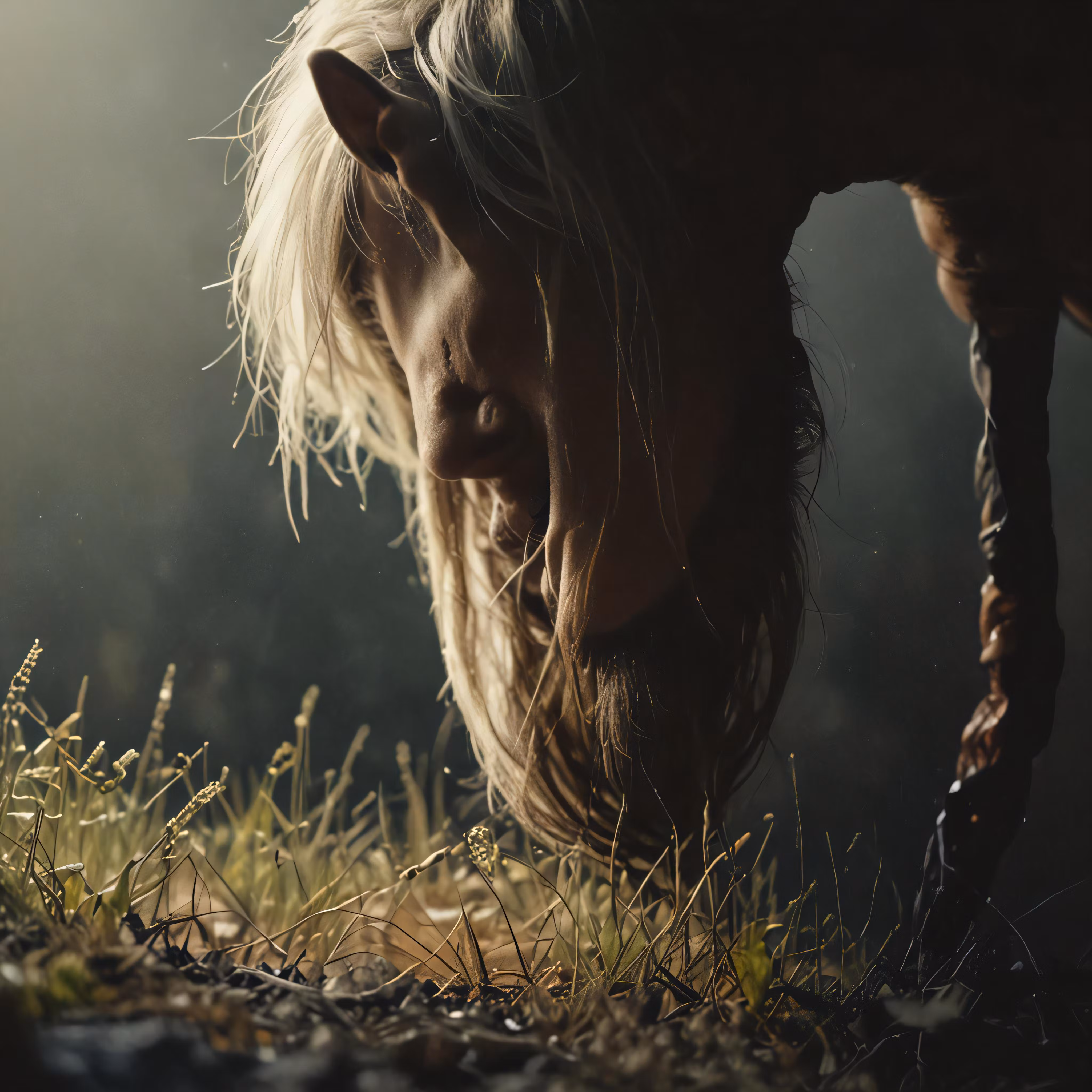 High resolution picture, free to use, a horse is in the field with its head down