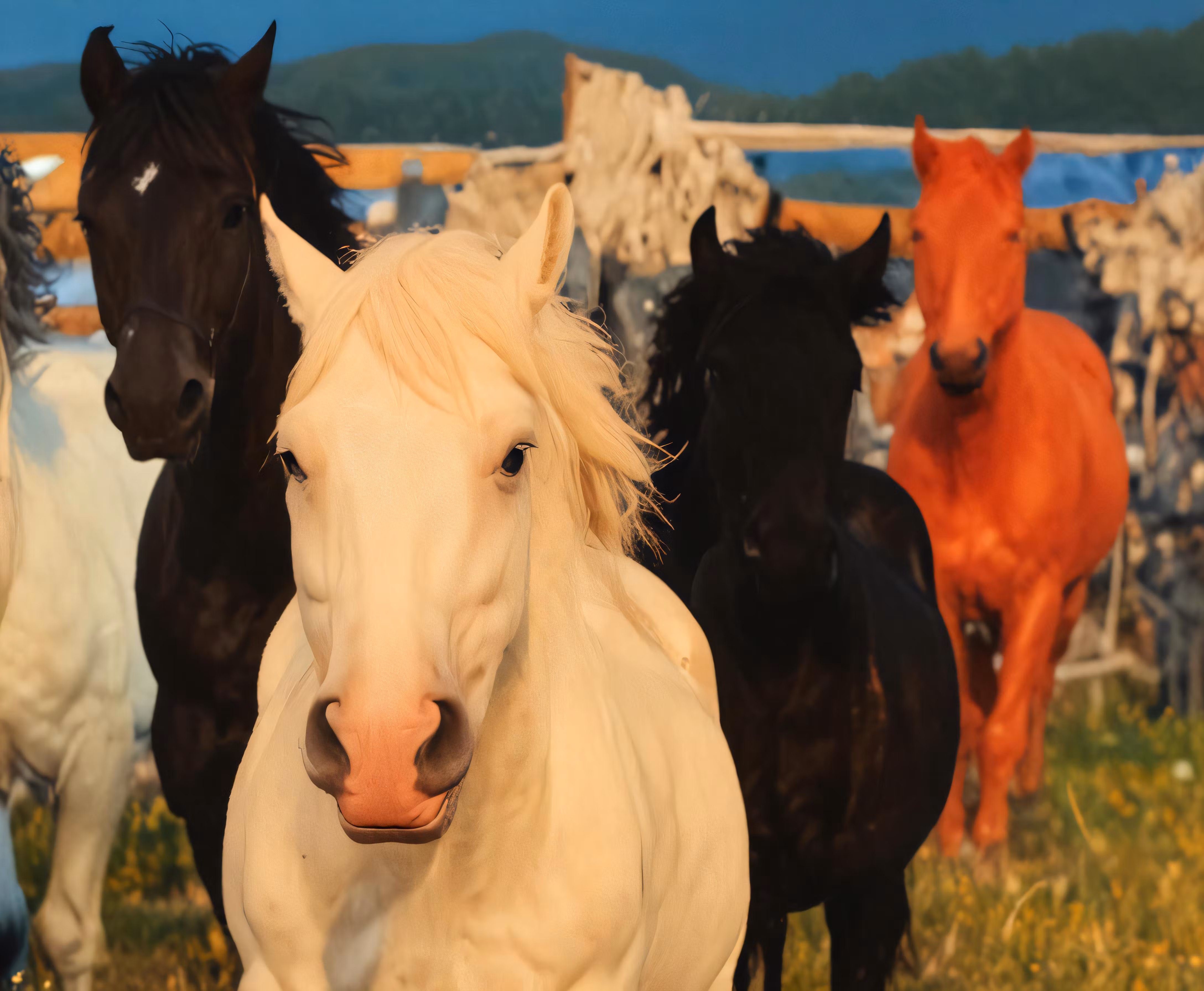 High resolution picture, free to use, a horse looking back with the other horses in the background