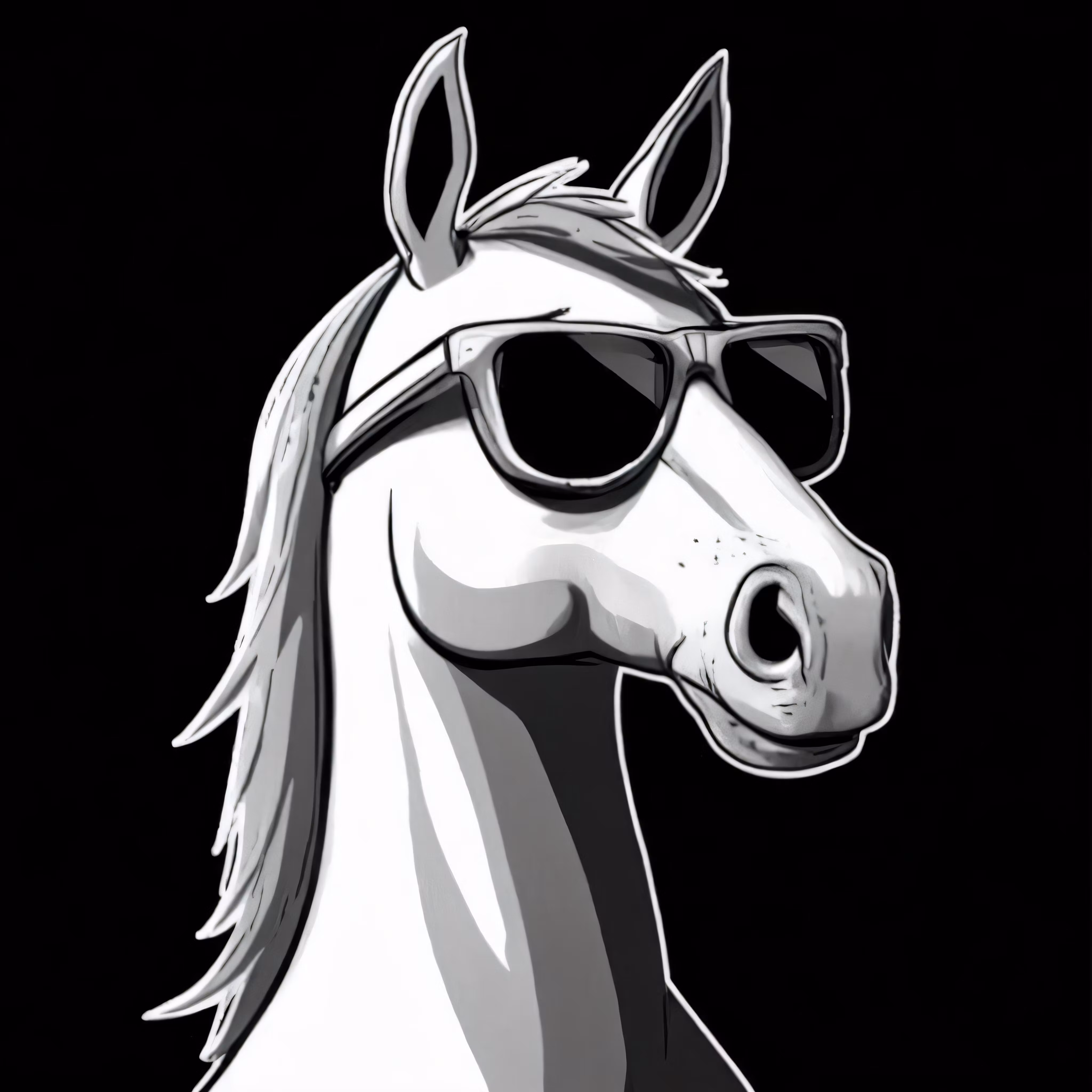 High resolution picture, free to use, a horse wearing sunglasses with one eye on the side