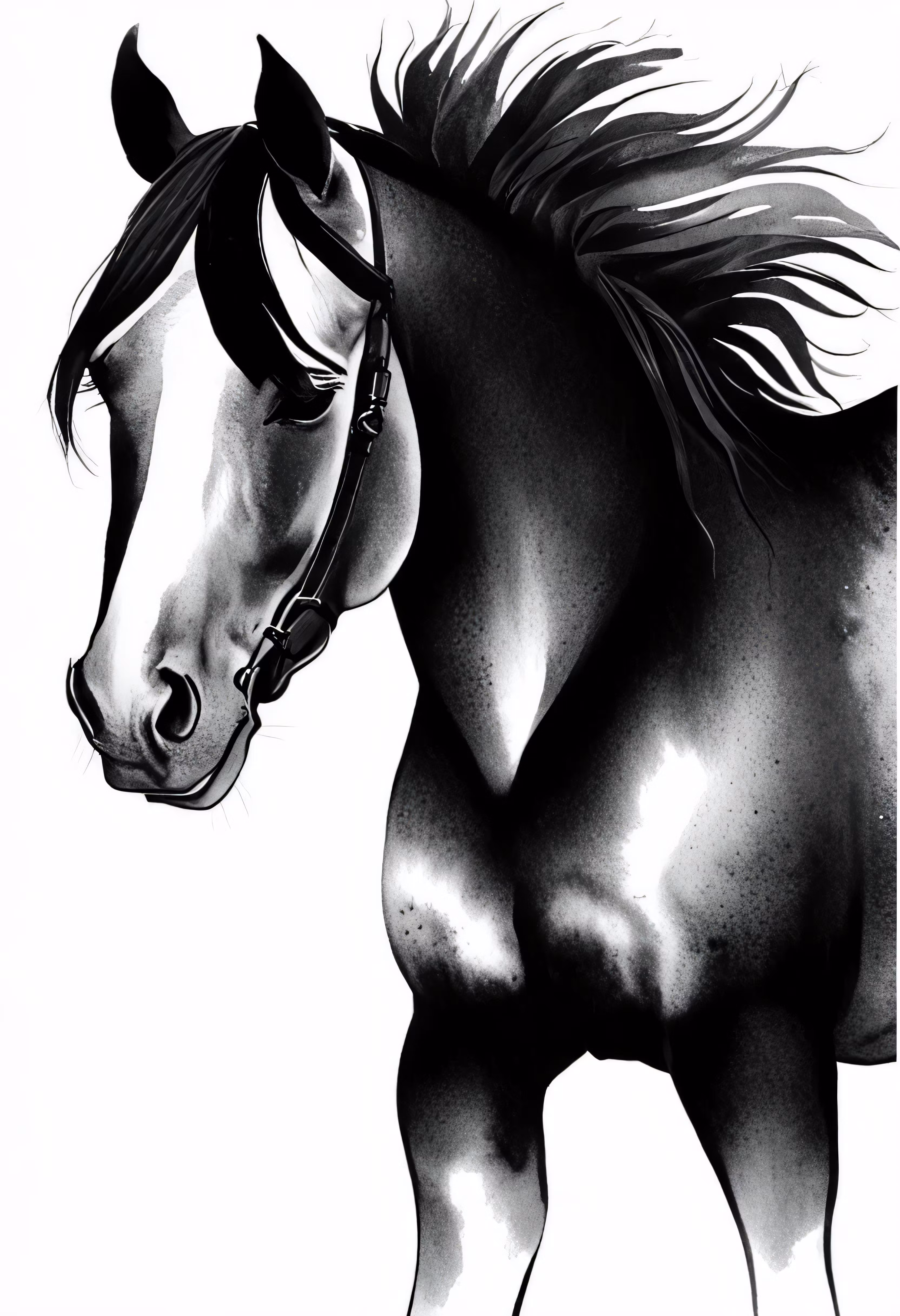 High resolution picture, free to use, a horse with a mane standing upright looking