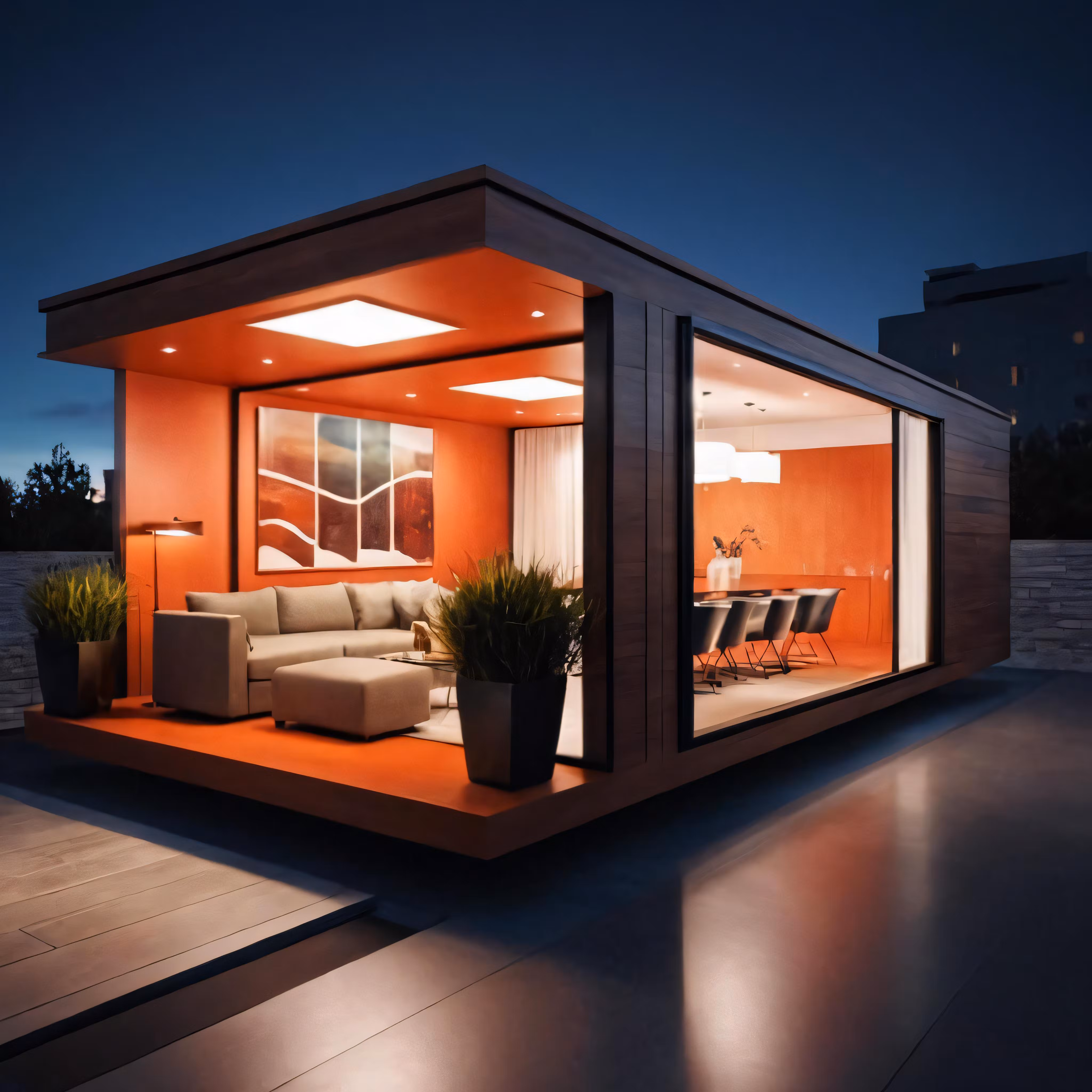 High resolution picture, free to use, a house built into the ground with a couch inside of it