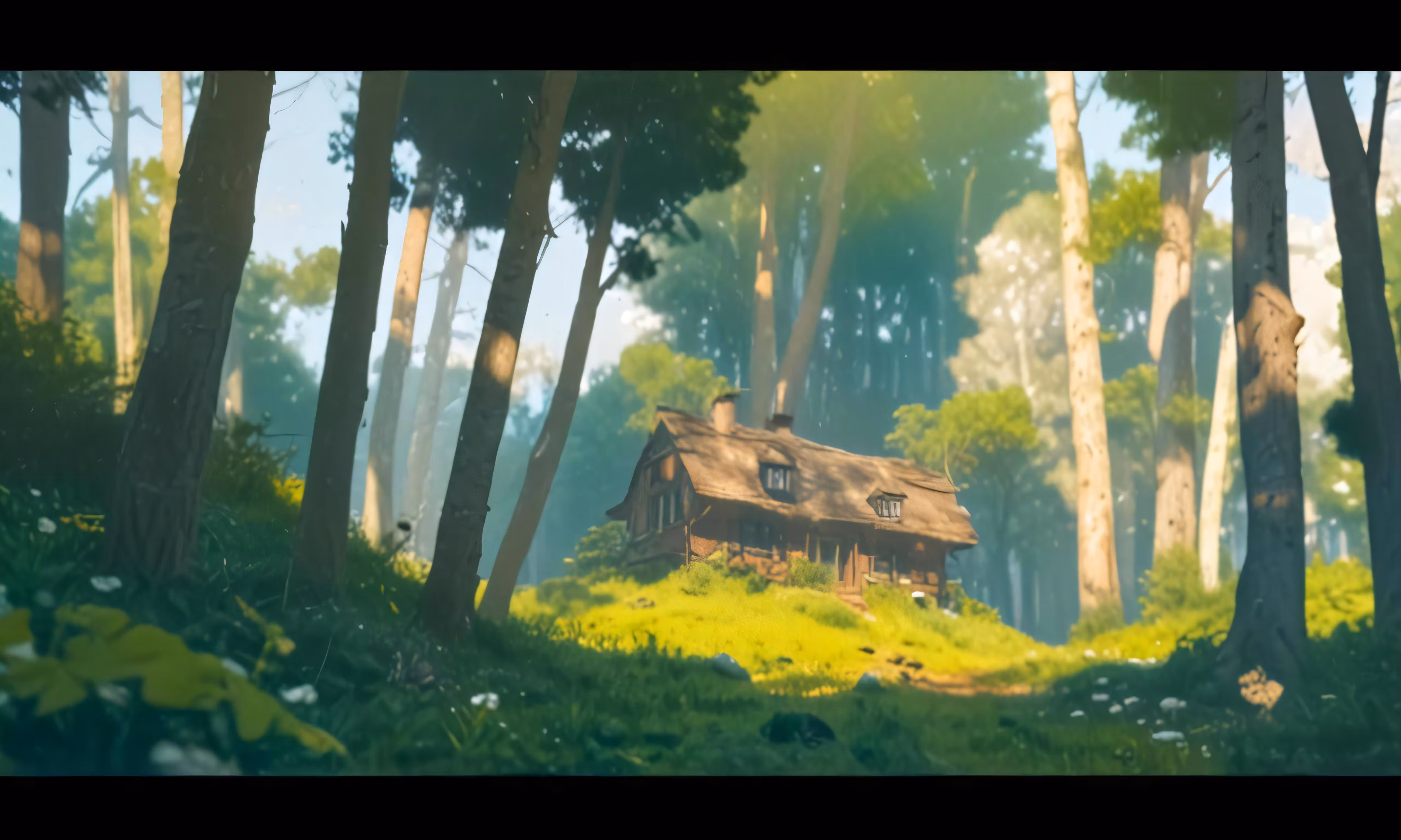 High resolution picture, free to use, a house in the middle of a forest on a hill