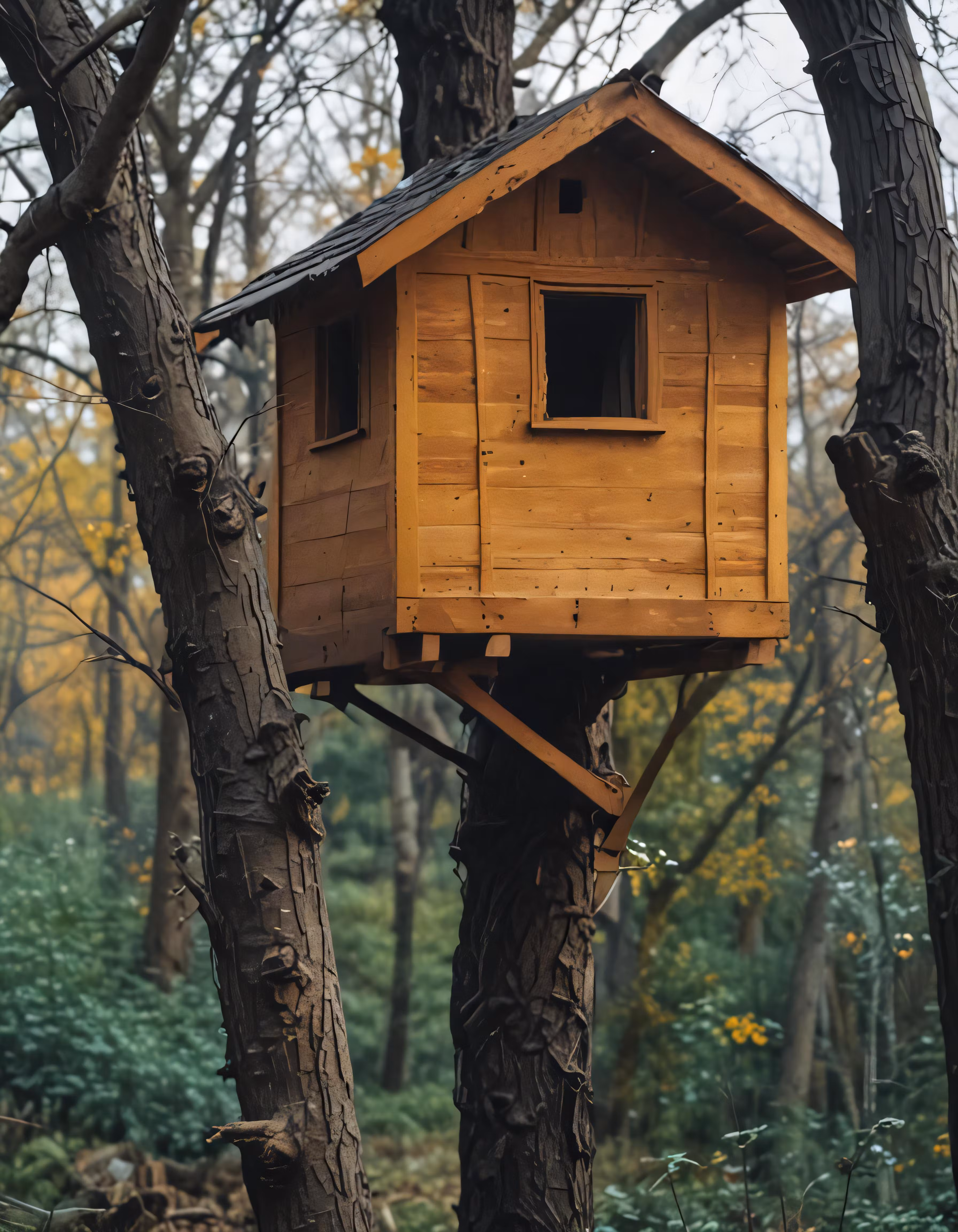 High resolution picture, free to use, a house is built in the middle of a wooded area