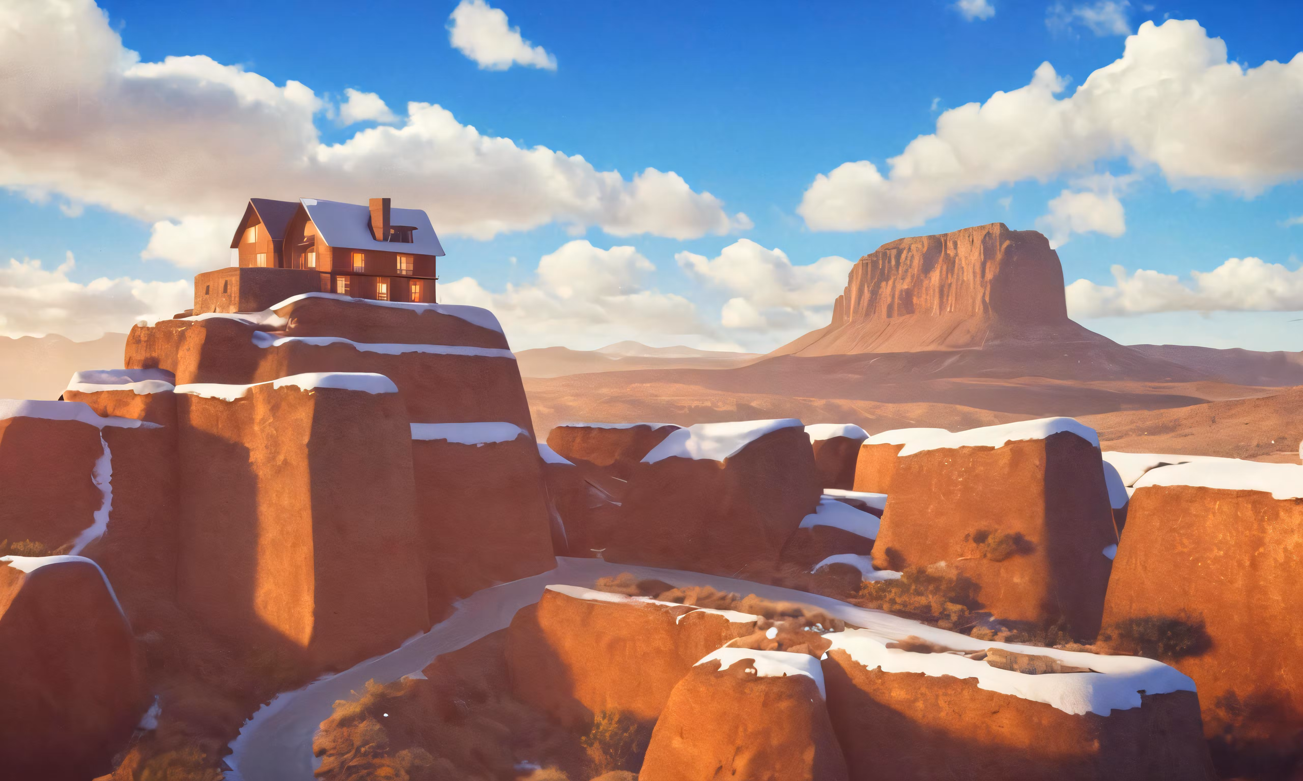 High resolution picture, free to use, a house on the side of a snowy mountain