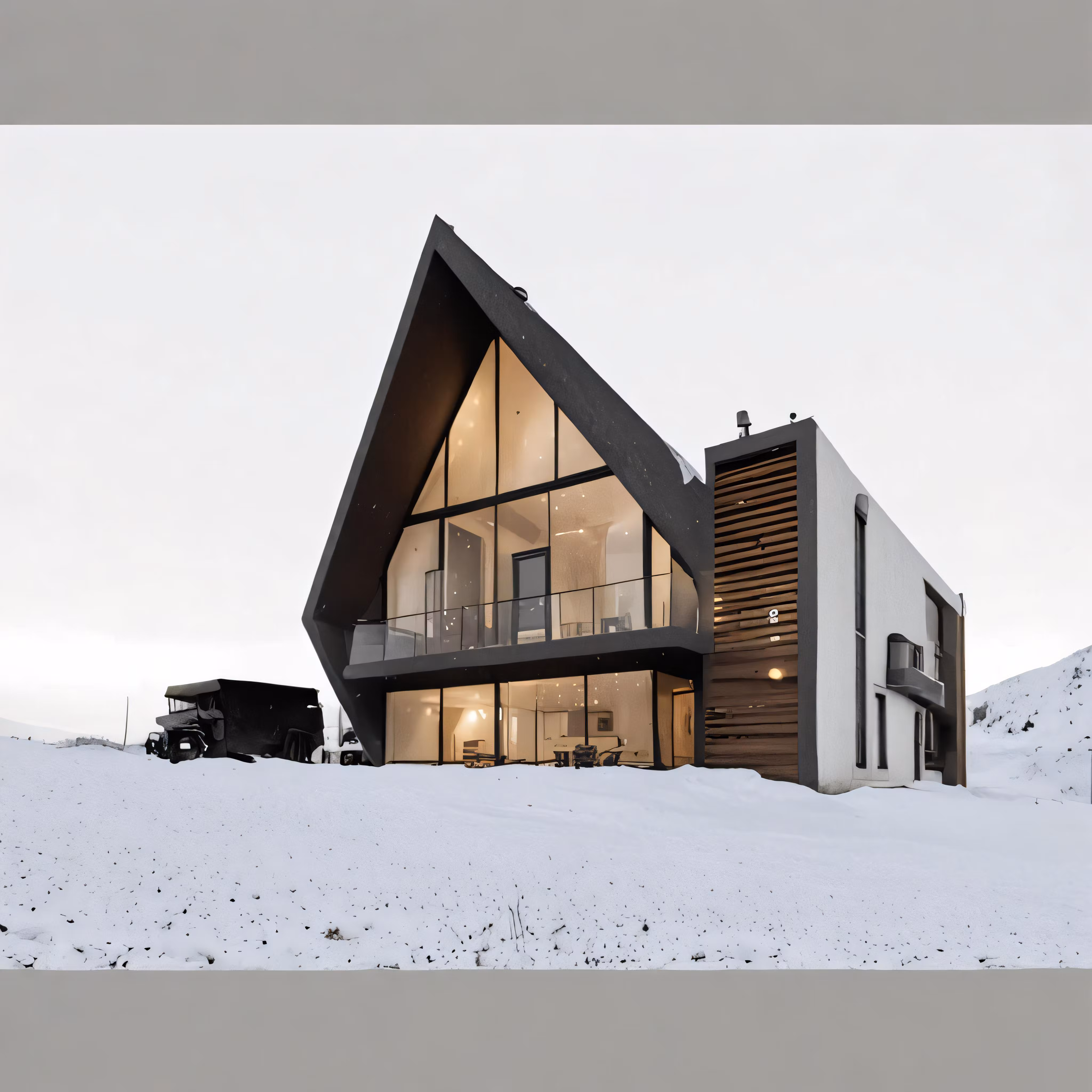 High resolution picture, free to use, a house that is built into the snow covered mountain side