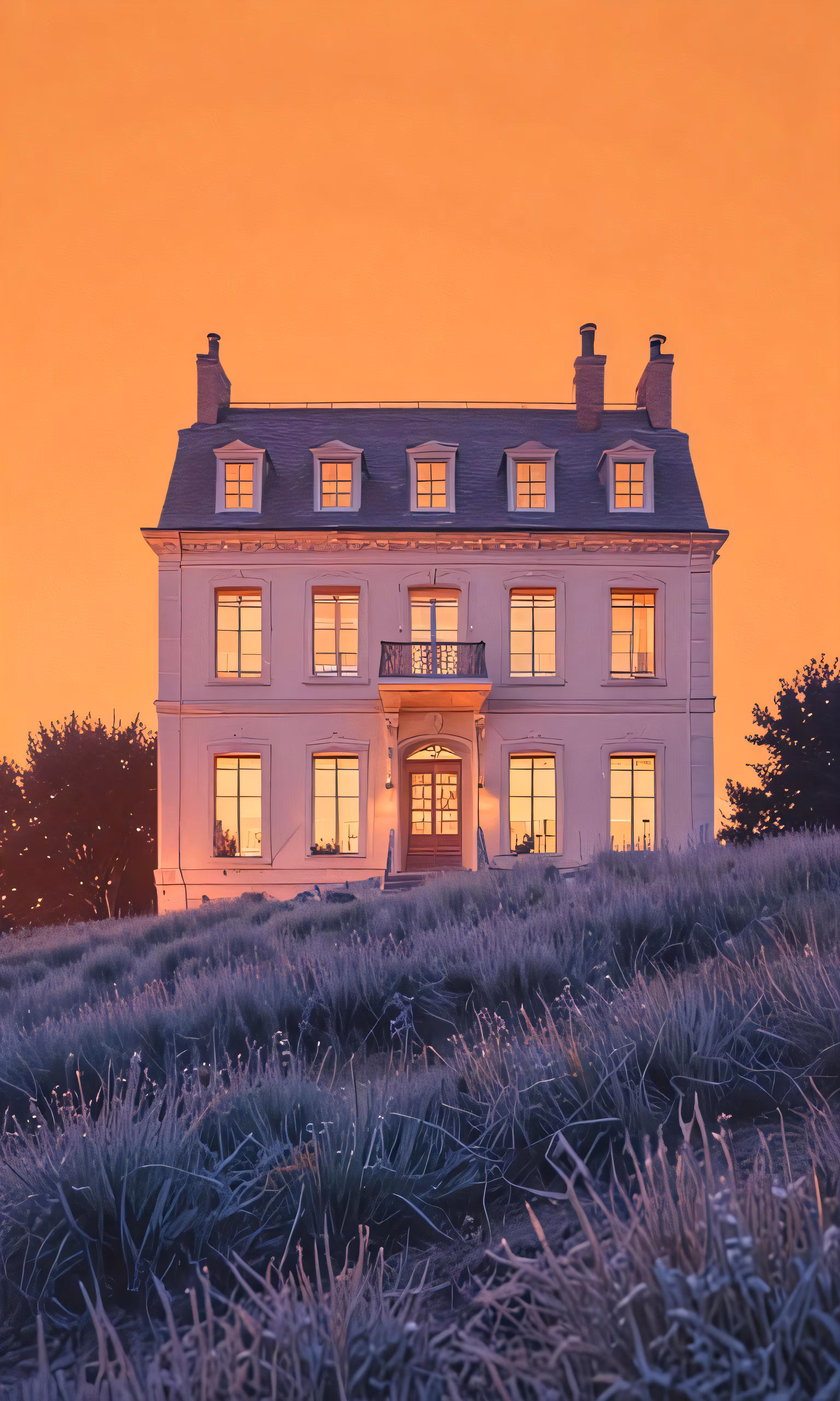 High resolution picture, free to use, a house with a sky filled with light coming through windows
