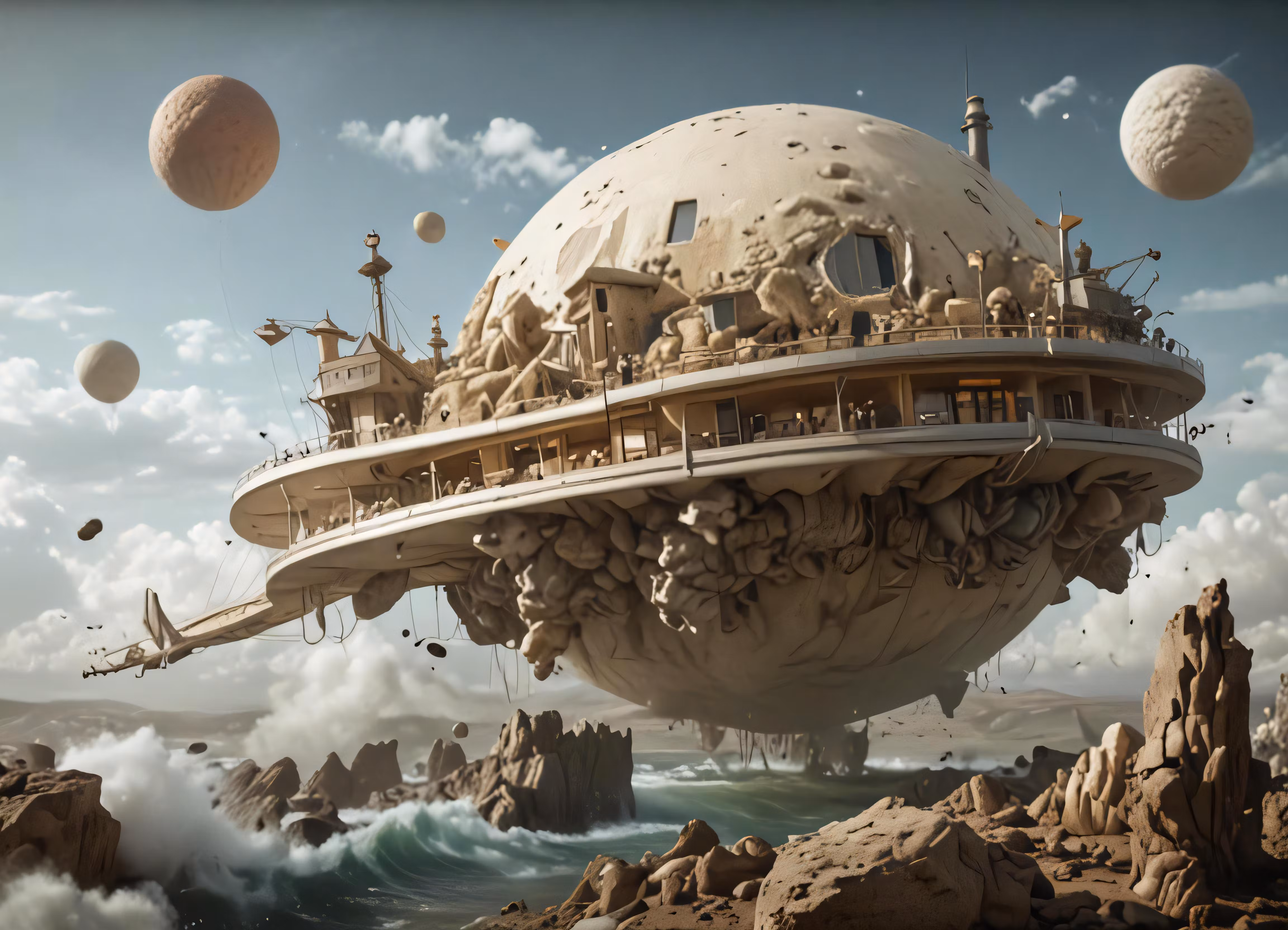 High resolution picture, free to use, a huge object with a bunch of objects floating over