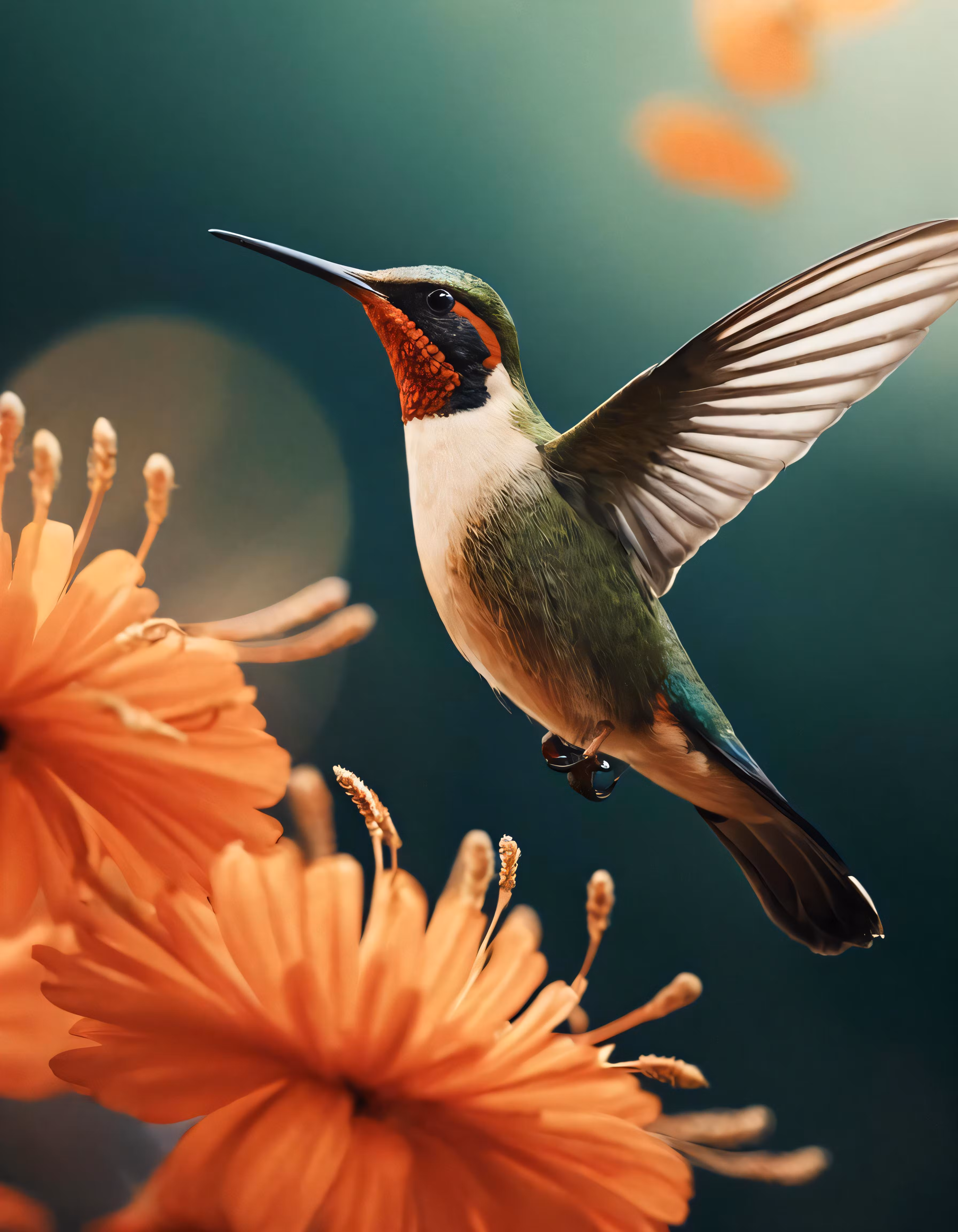 High resolution picture, free to use, a hummingbird is hovering next to a flower