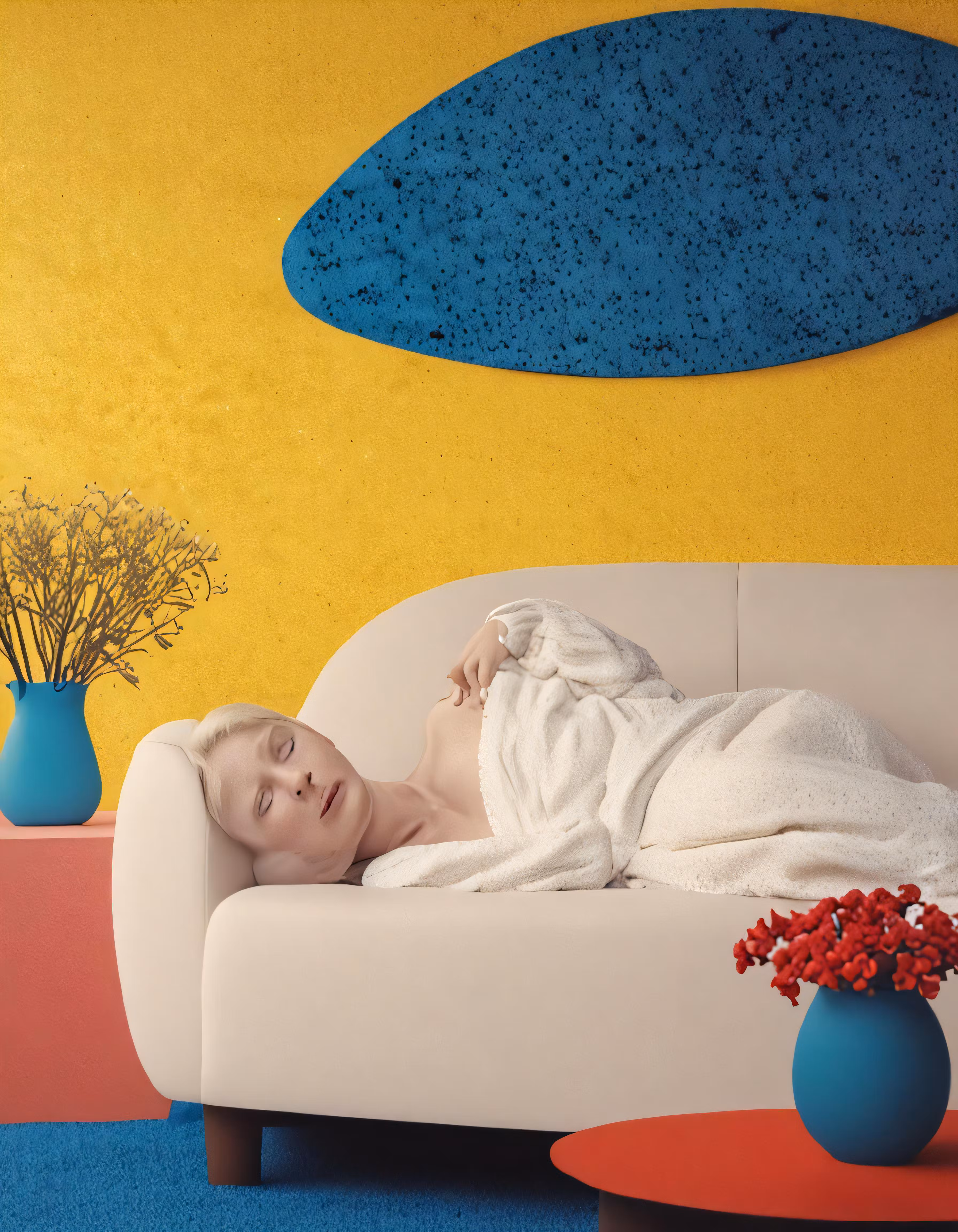 High resolution picture, free to use, a kid laying on a couch with a plant