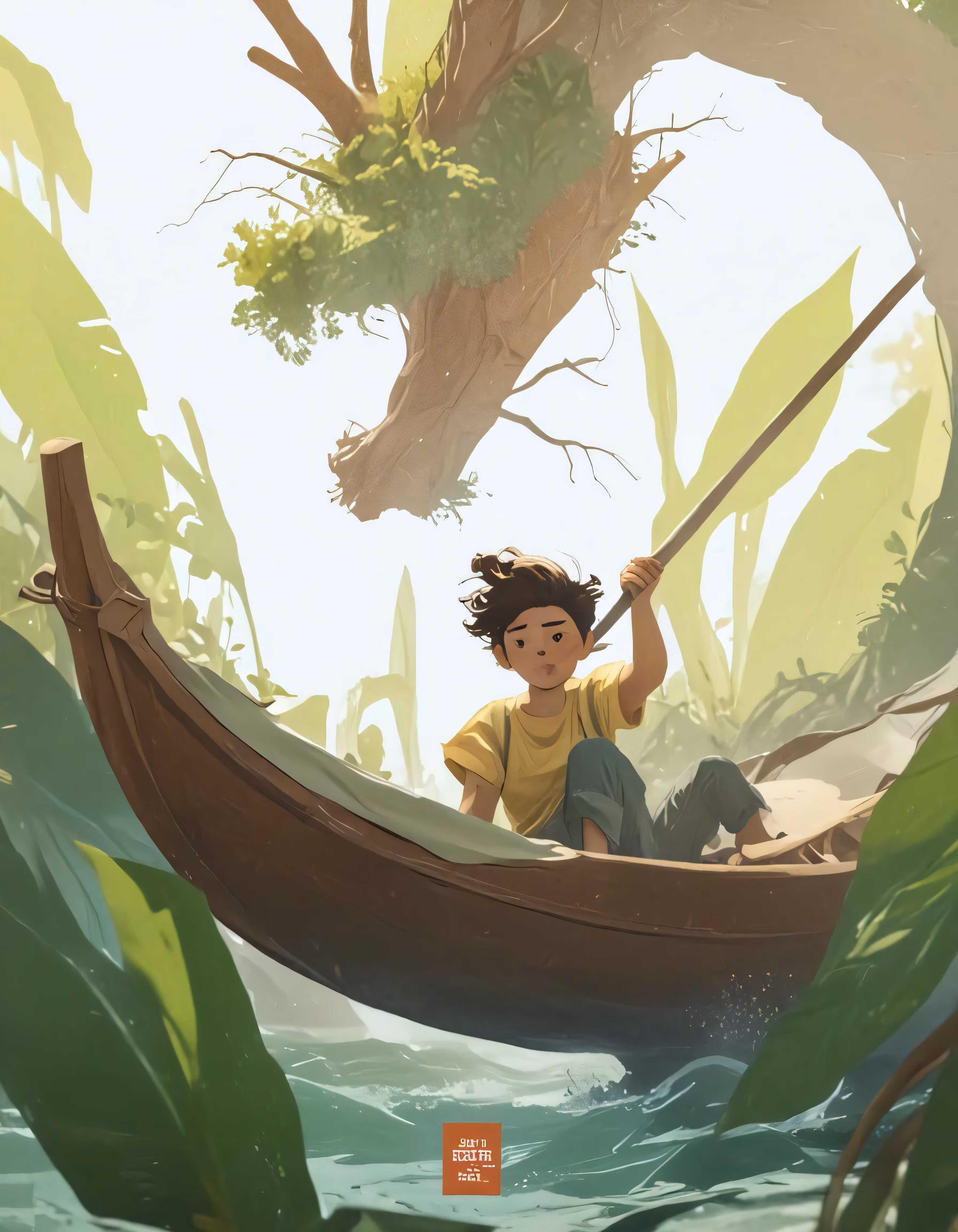 High resolution picture, free to use, a kid sitting on top of a boat in the water