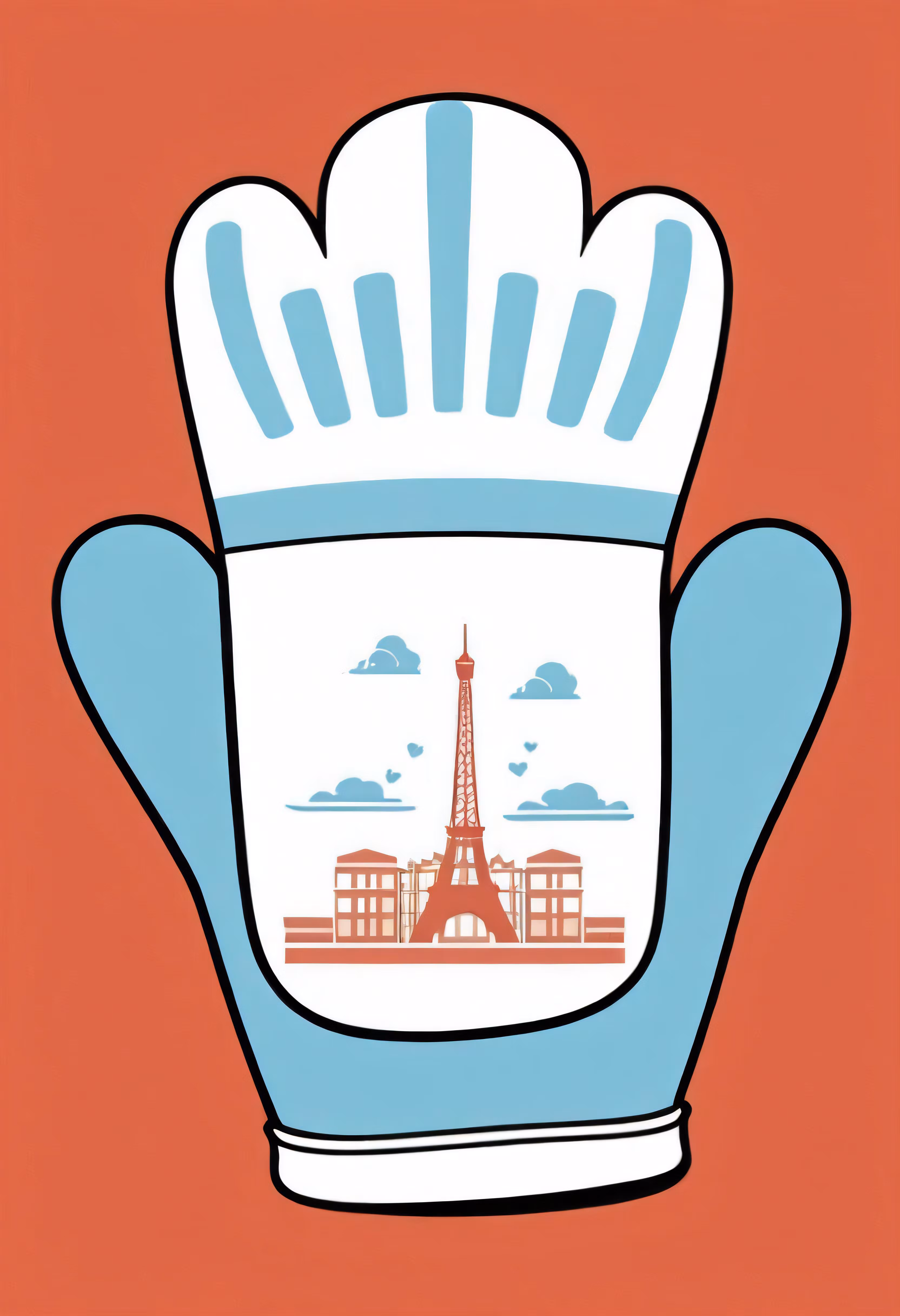 High resolution picture, free to use, a kitchen mitt with the eiffel tower in red and blue