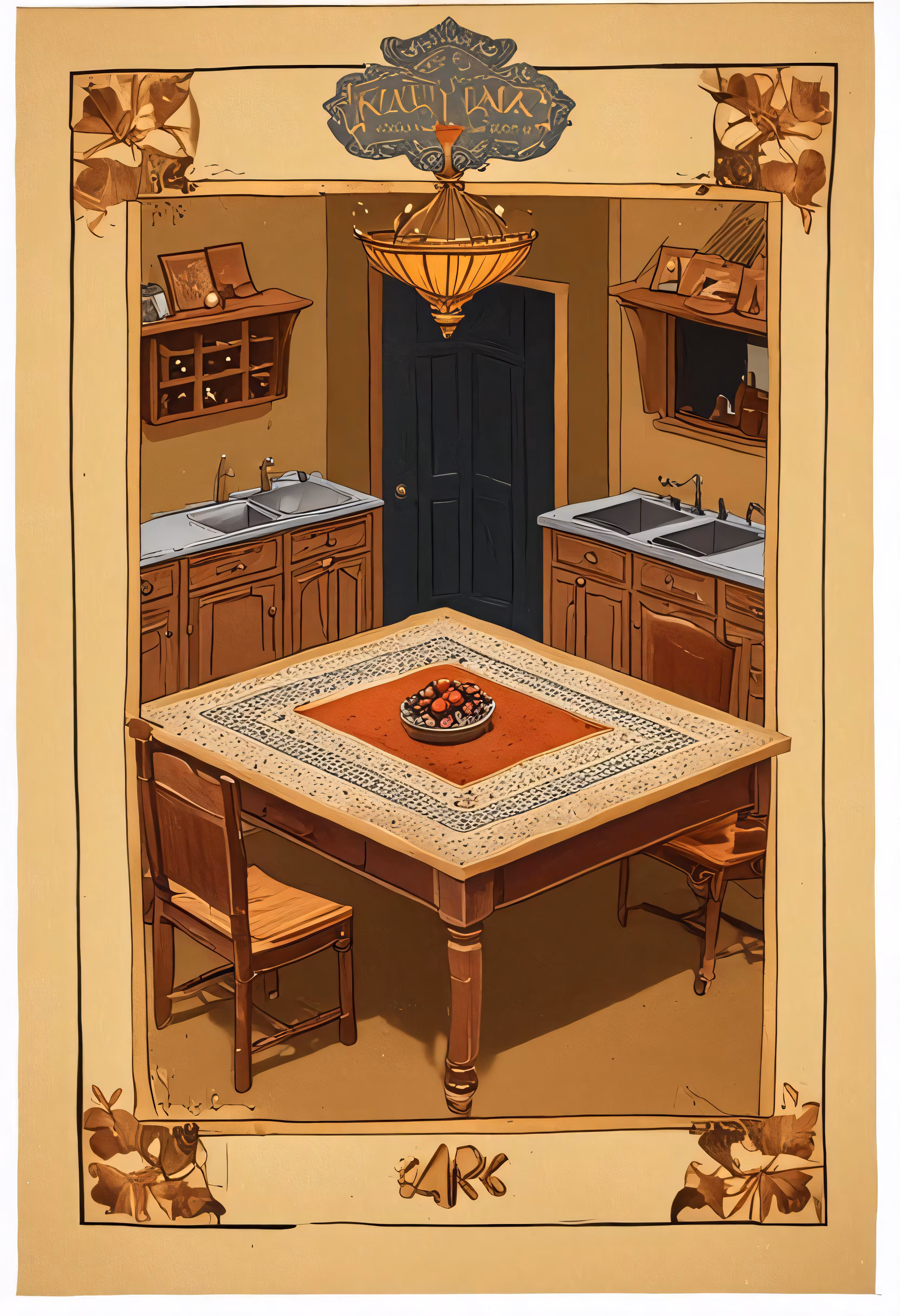 High resolution picture, free to use, a kitchen scene showing an old fashioned table and chairs