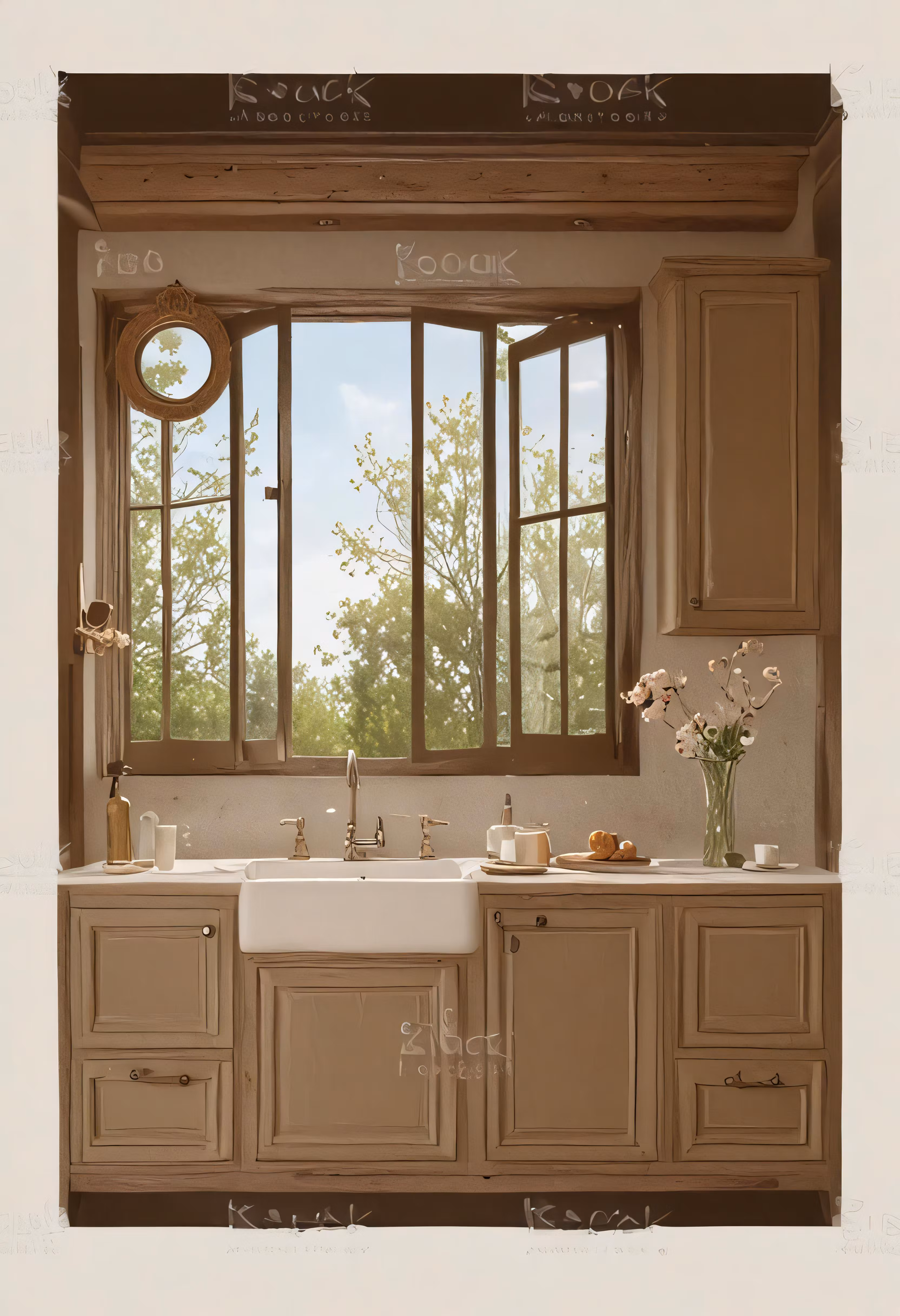 High resolution picture, free to use, a kitchen sink that is under the window