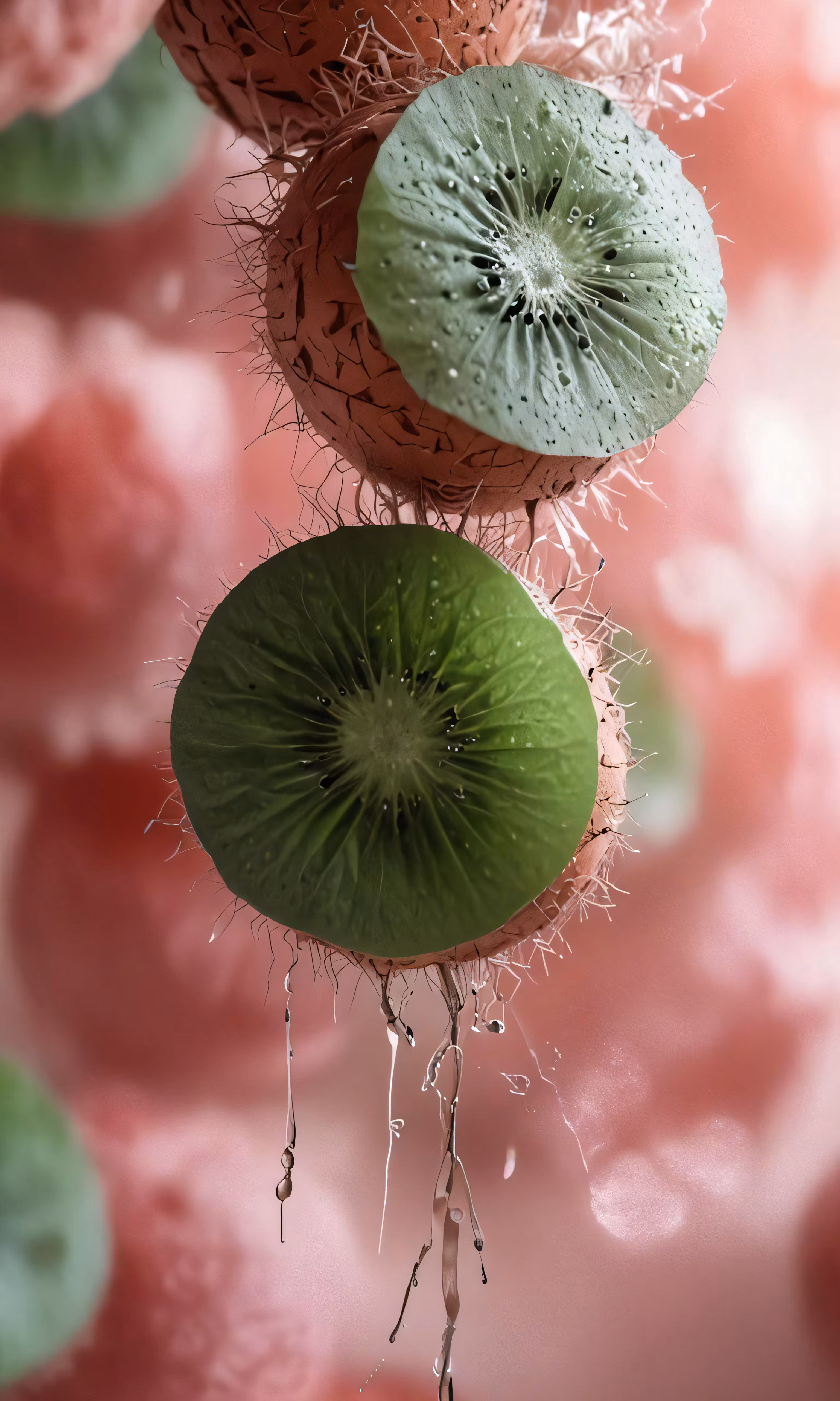 High resolution picture, free to use, a kiwi and water drops sitting on the surface