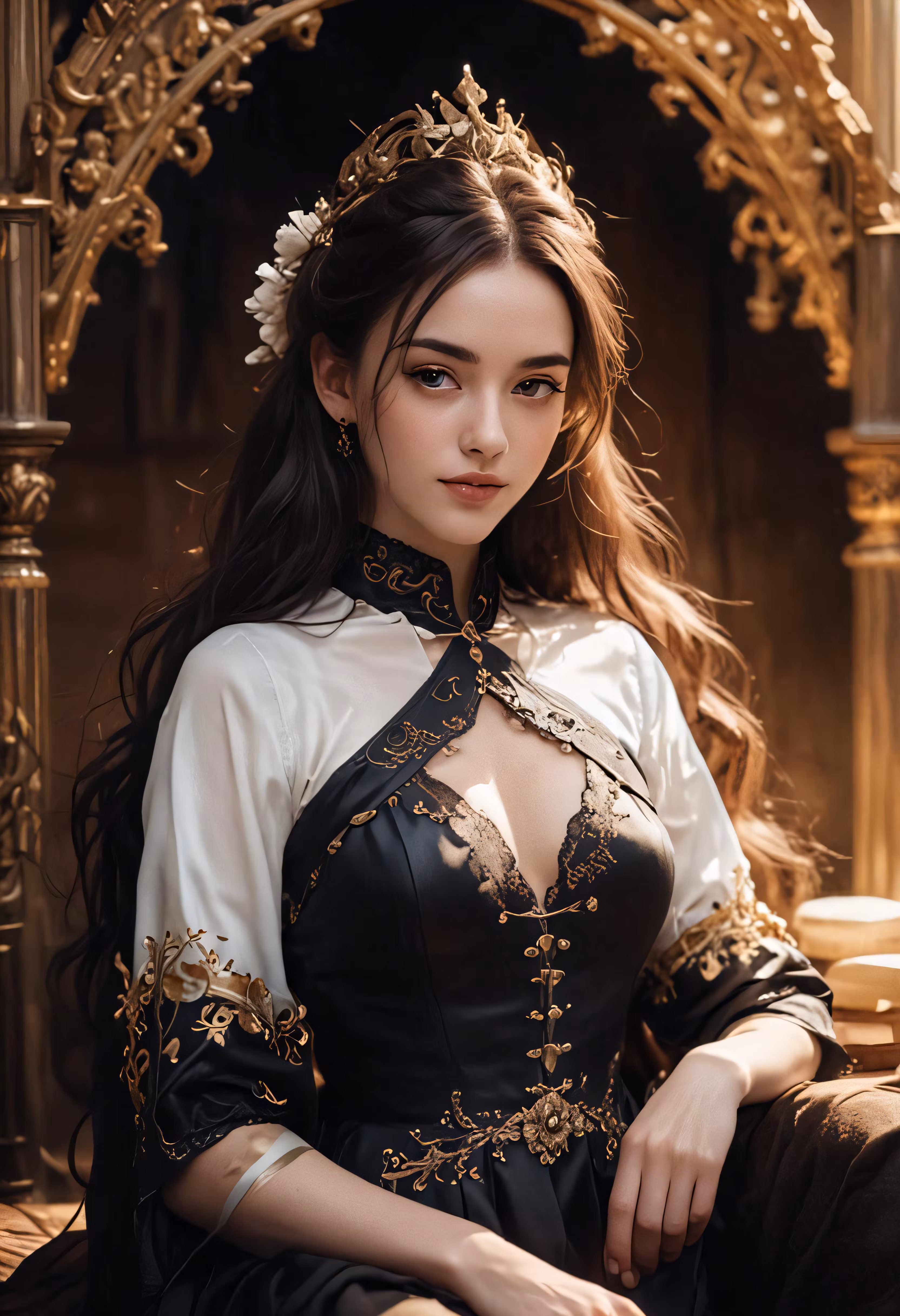 High resolution picture, free to use, a lady sitting down wearing a black and white dress
