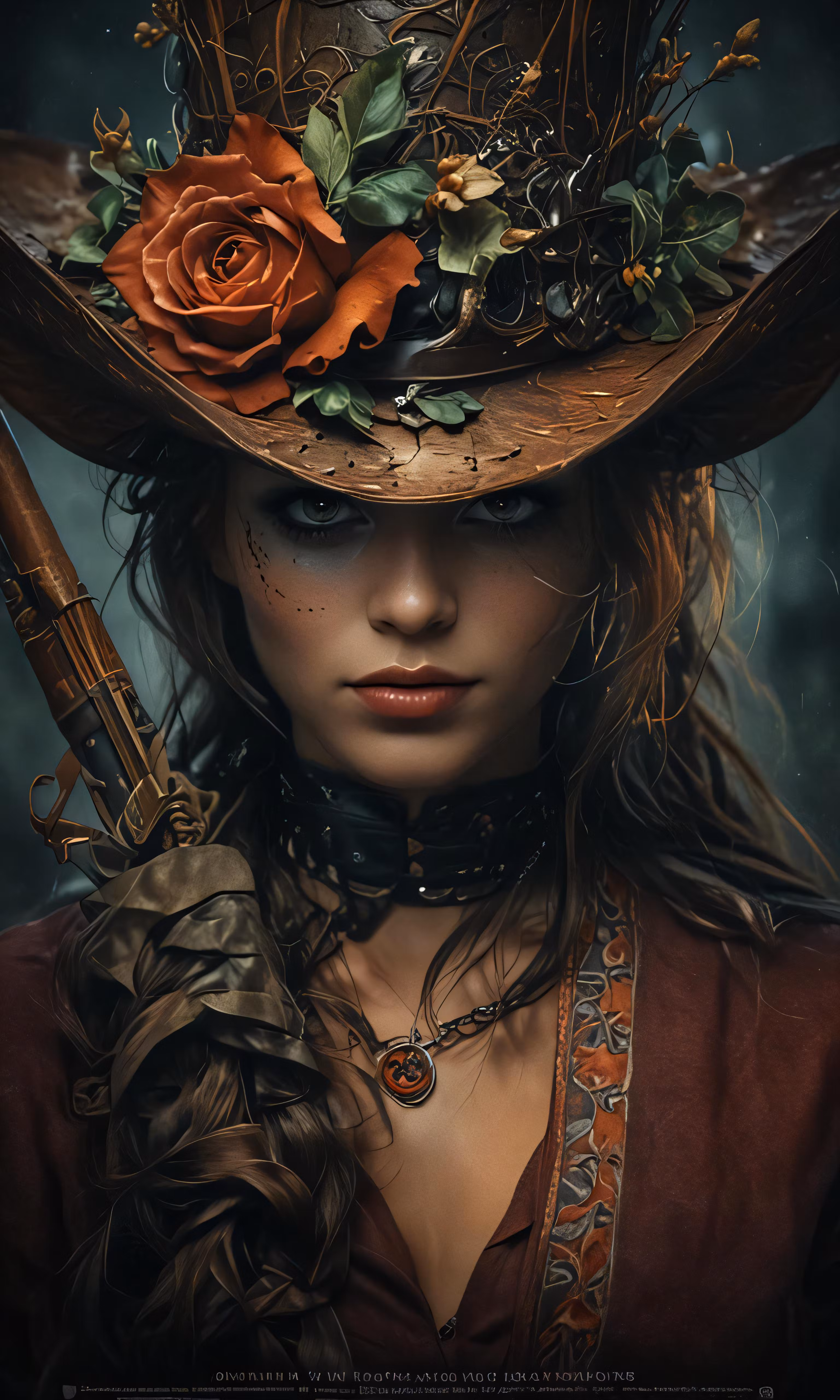 High resolution picture, free to use, a lady wearing a hat with a flower on her head