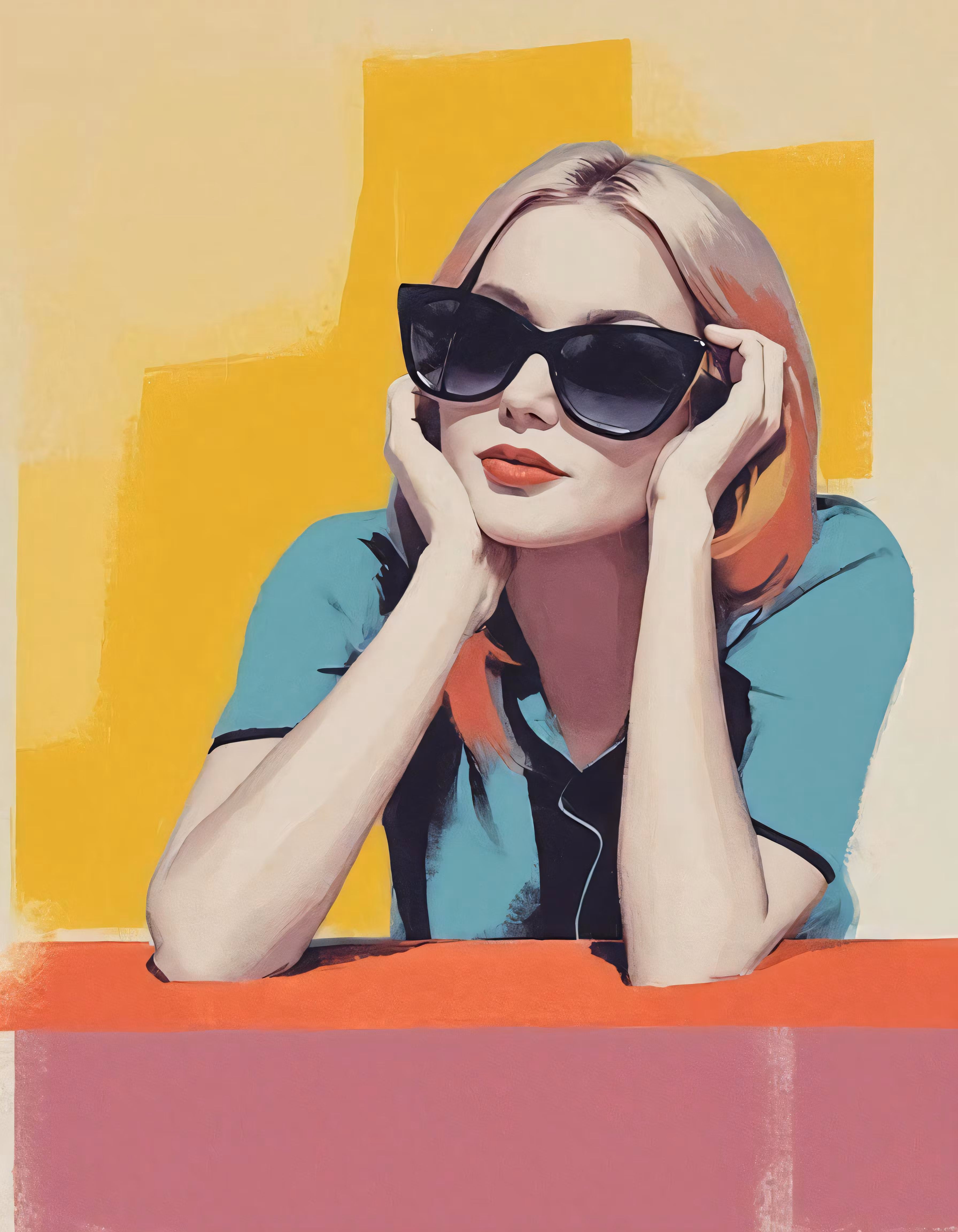 High resolution picture, free to use, a lady wearing sunglasses and sitting at the table