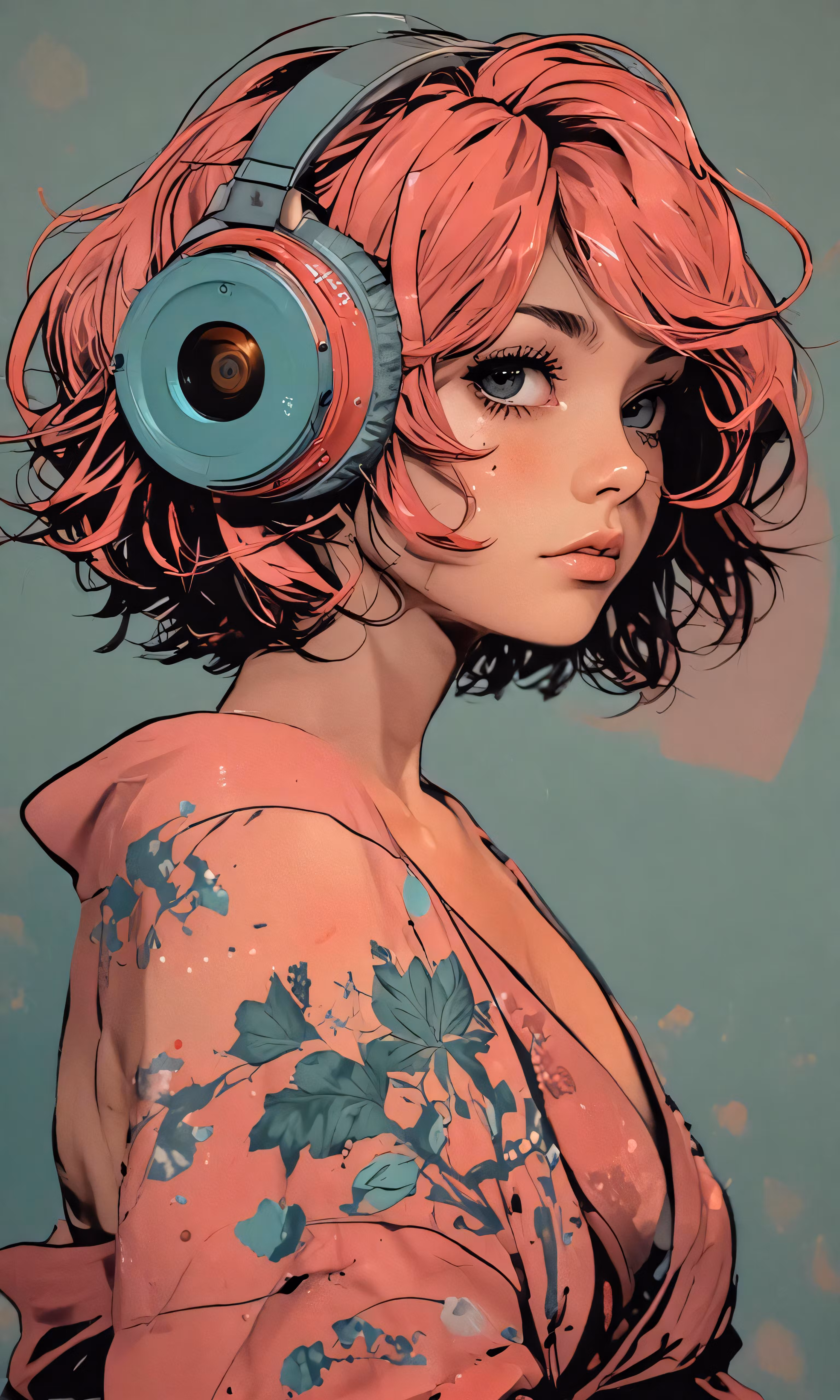 High resolution picture, free to use, a lady with headphones is in a pink outfit