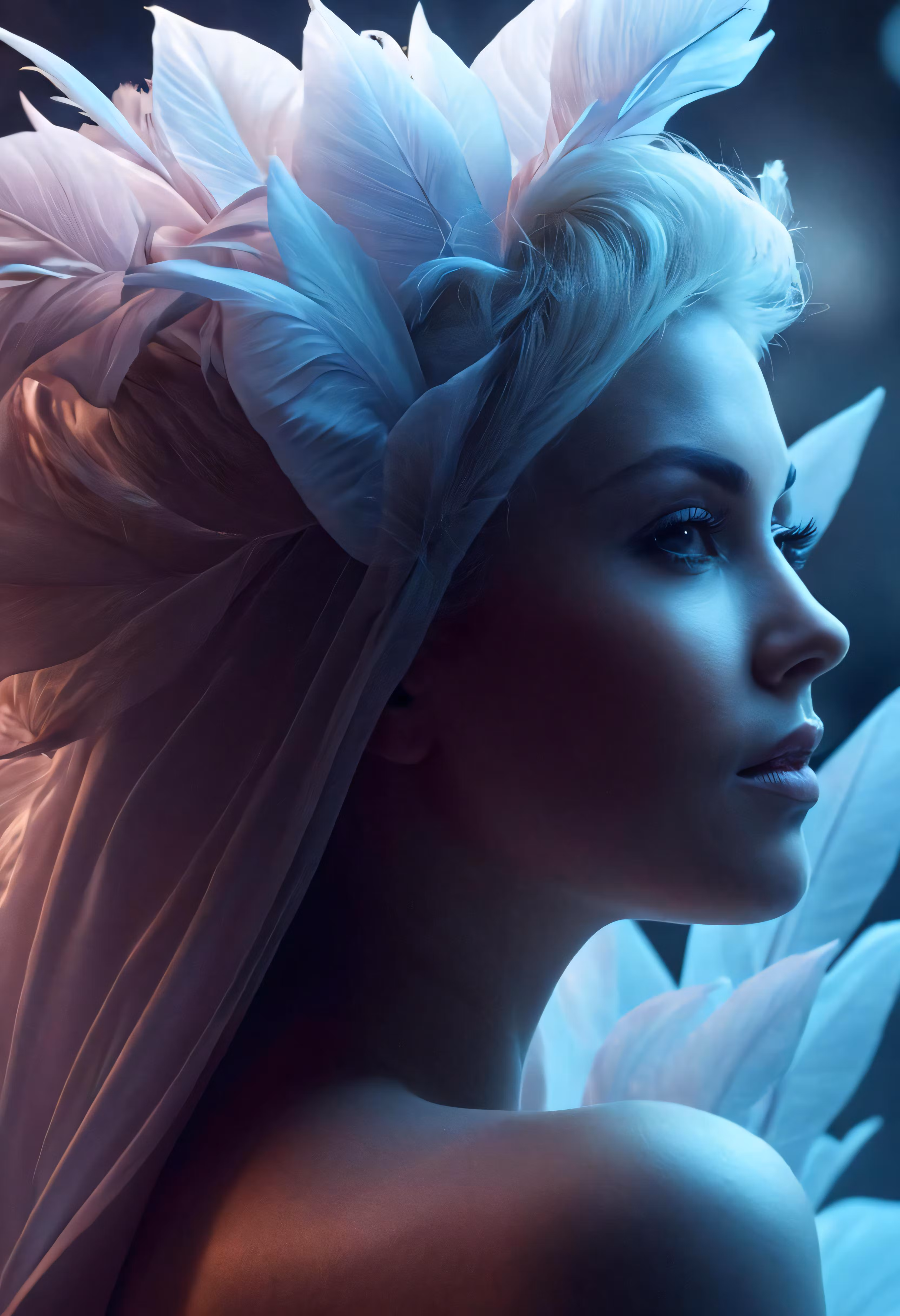 High resolution picture, free to use, a lady with large feathers on her head