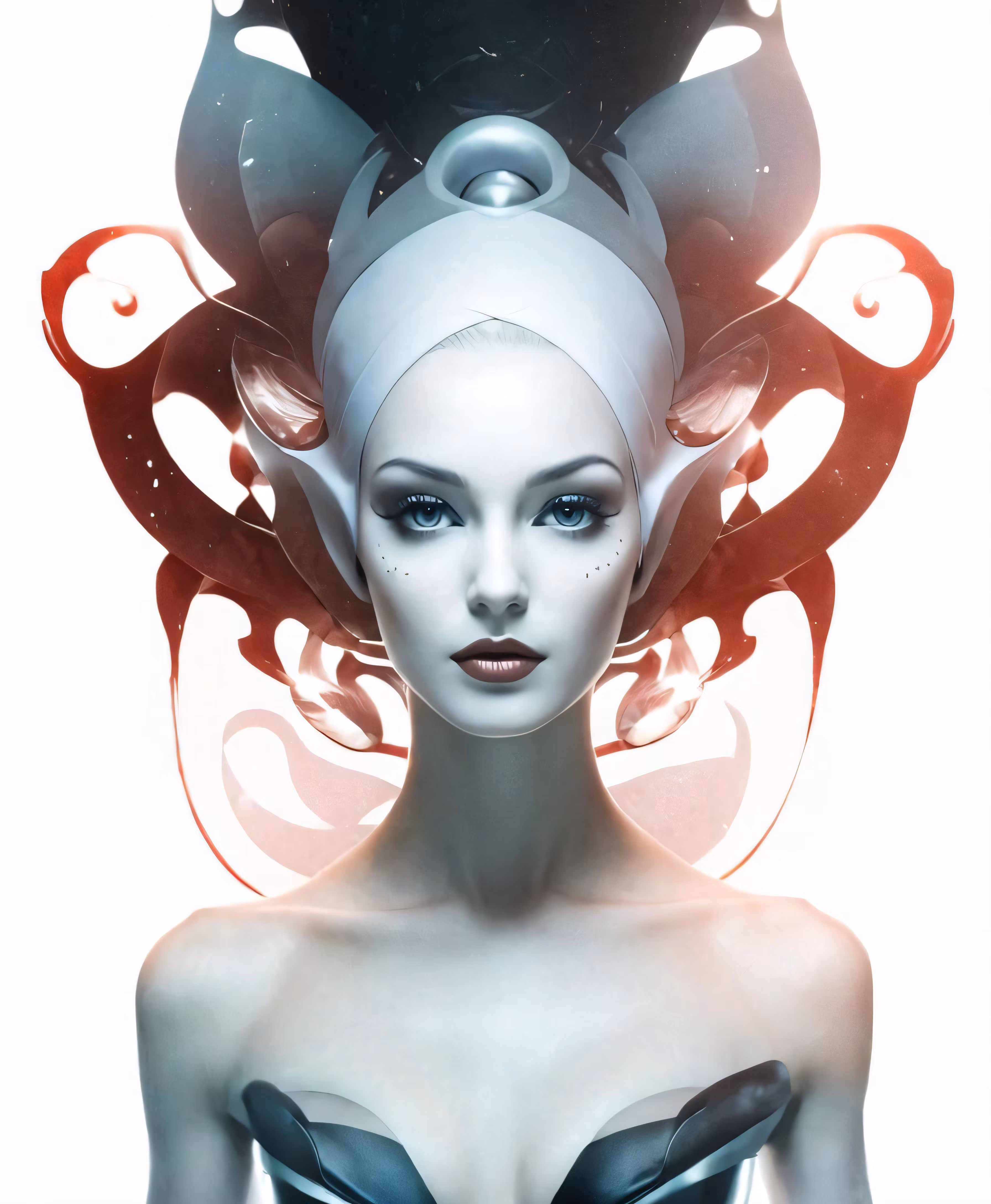 High resolution picture, free to use, a lady with lots of different faces is shown in front of a white background