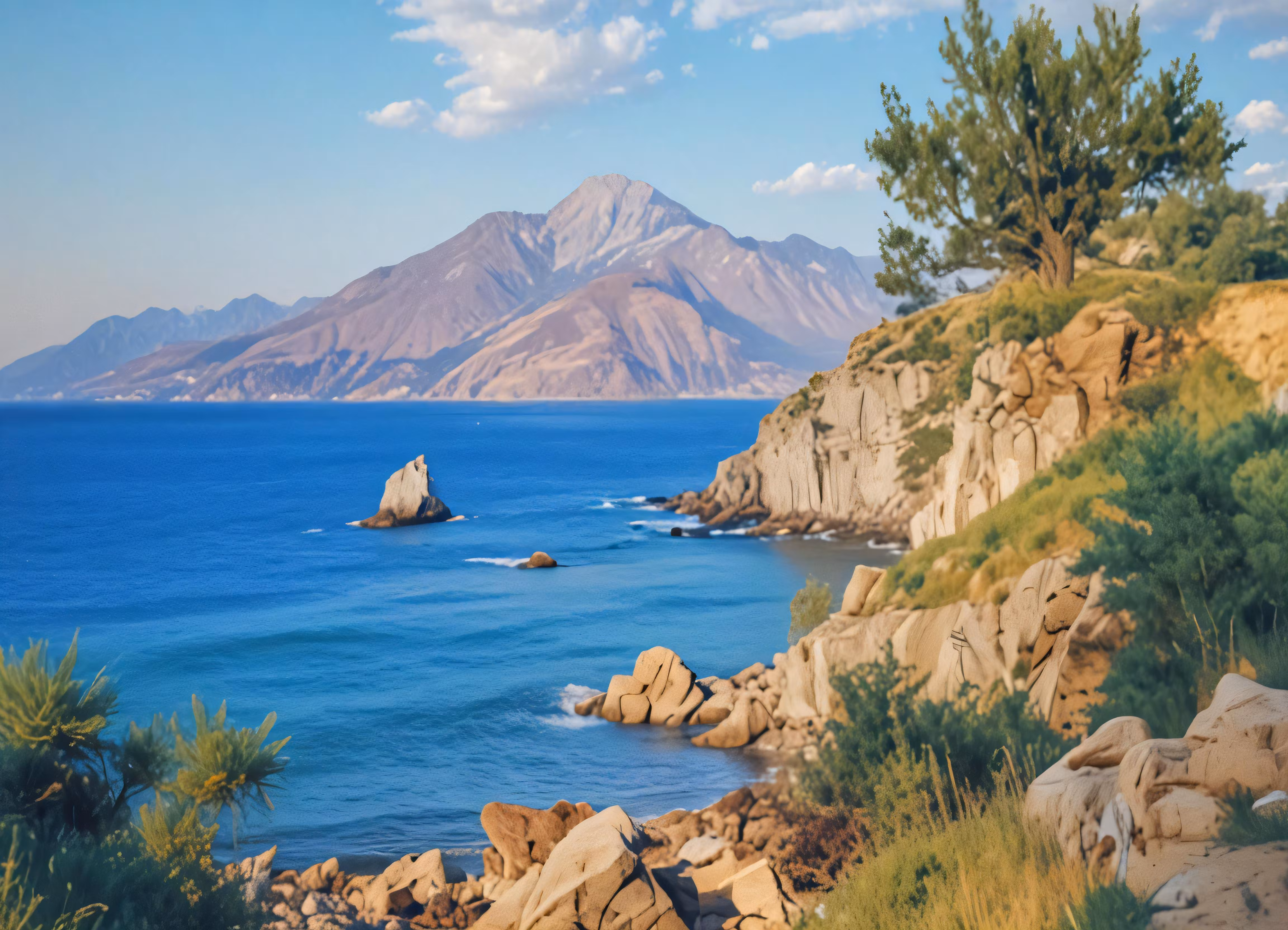 High resolution picture, free to use, a lake with mountain in the background and clear blue water