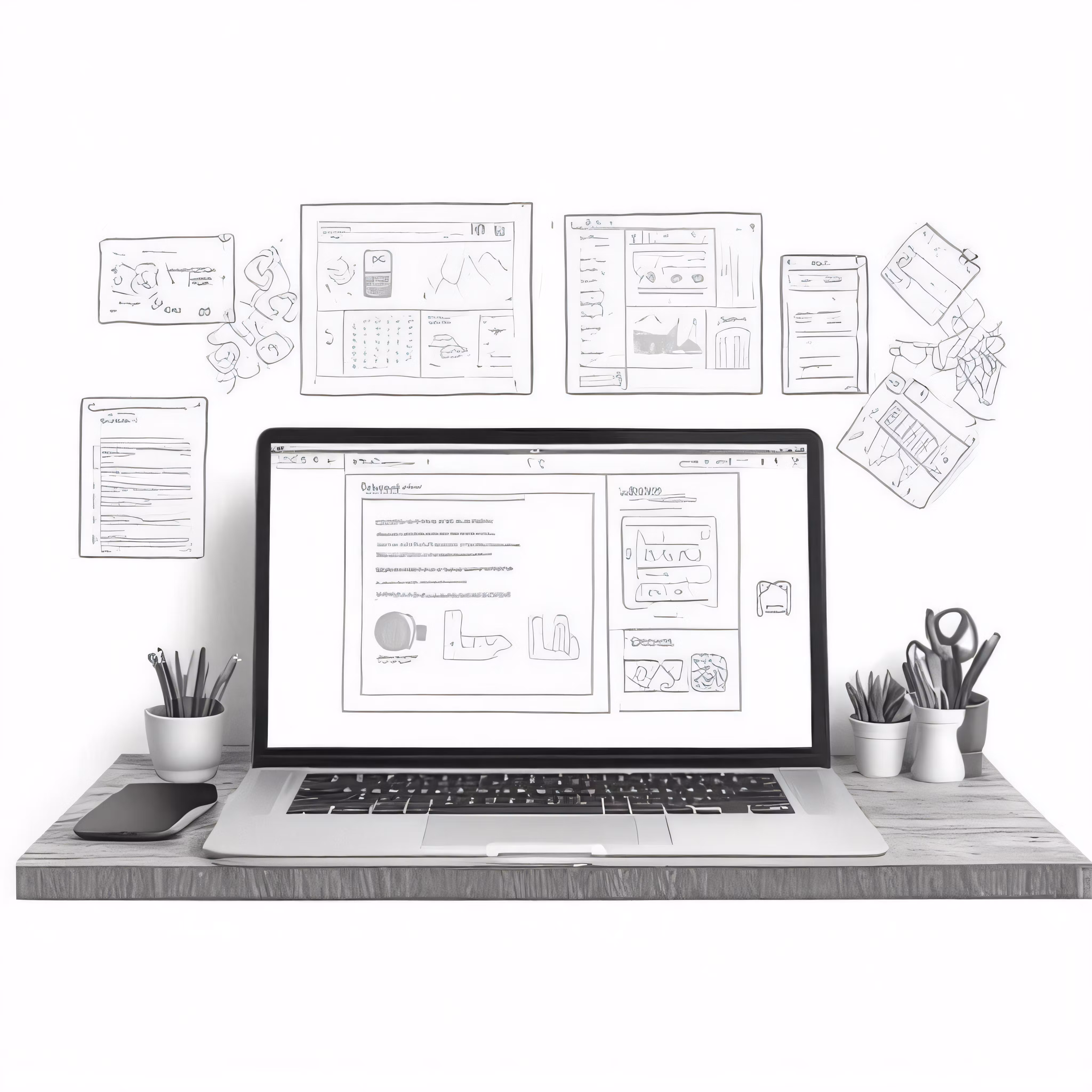 High resolution picture, free to use, a laptop computer sitting on top of a wooden desk