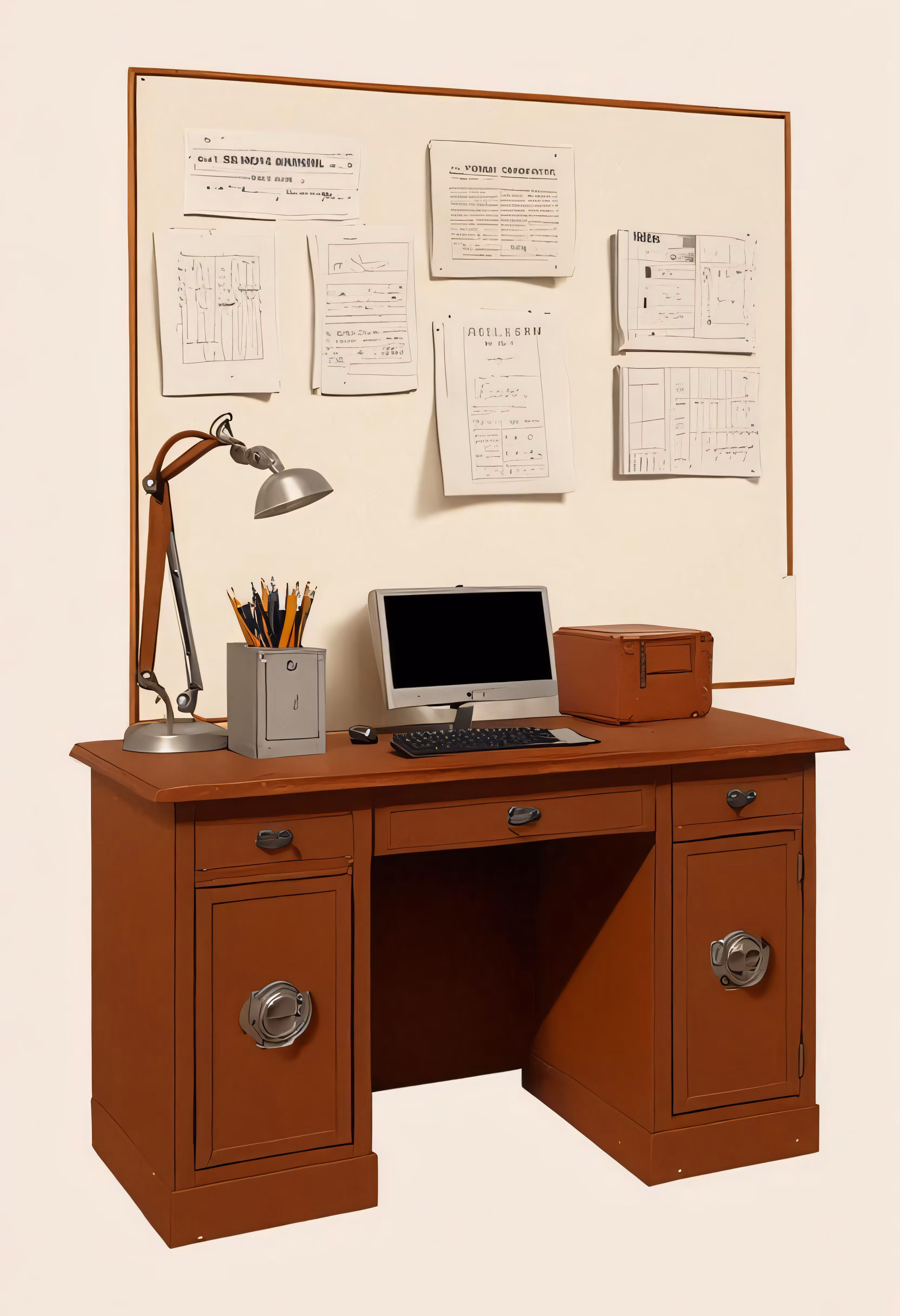 High resolution picture, free to use, a laptop sitting on a desk next to an office wall