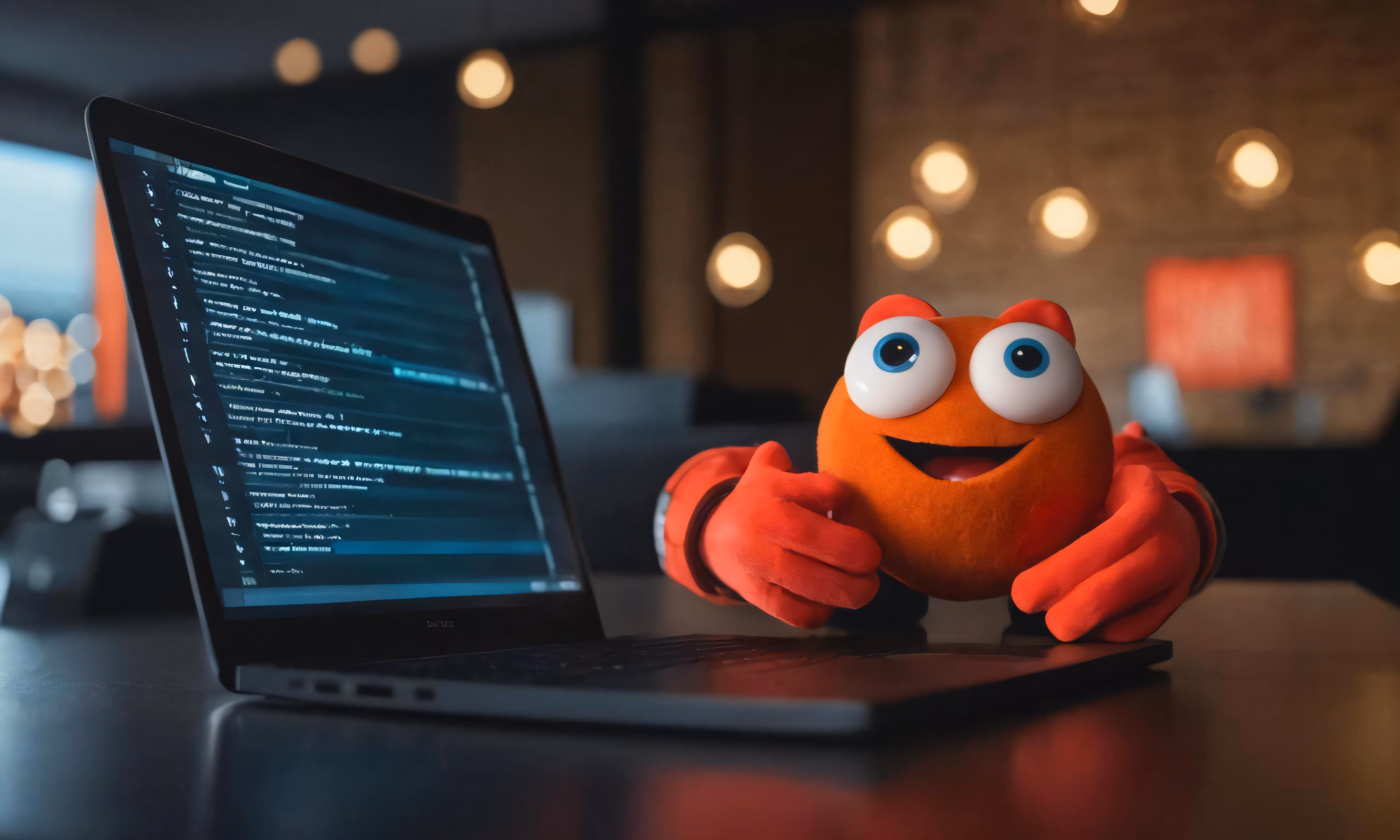High resolution picture, free to use, a laptop sitting on top of a table with a stuffed animal behind it
