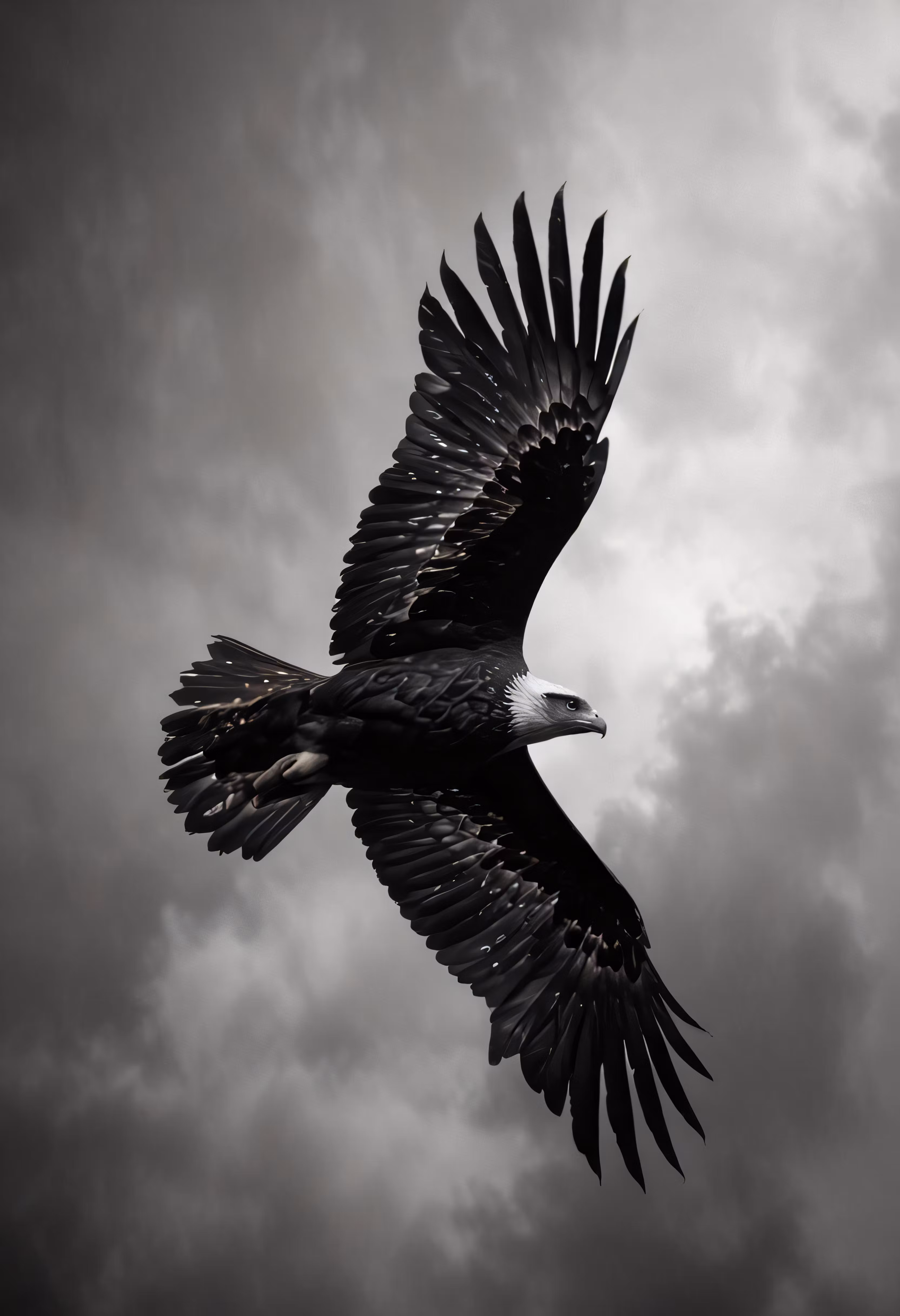 High resolution picture, free to use, a large bird flying through the sky near clouds