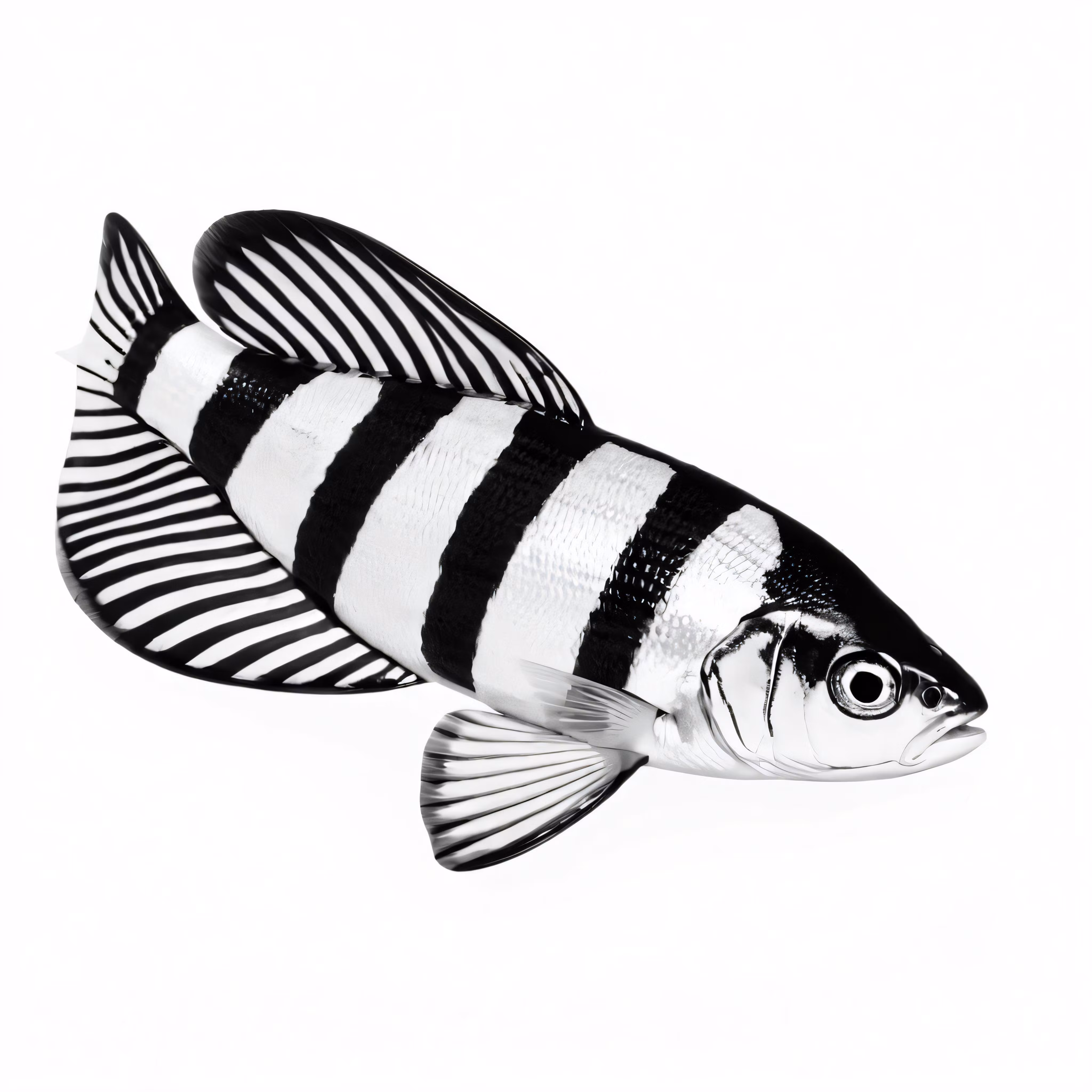 High resolution picture, free to use, a large black and white fish on a white surface