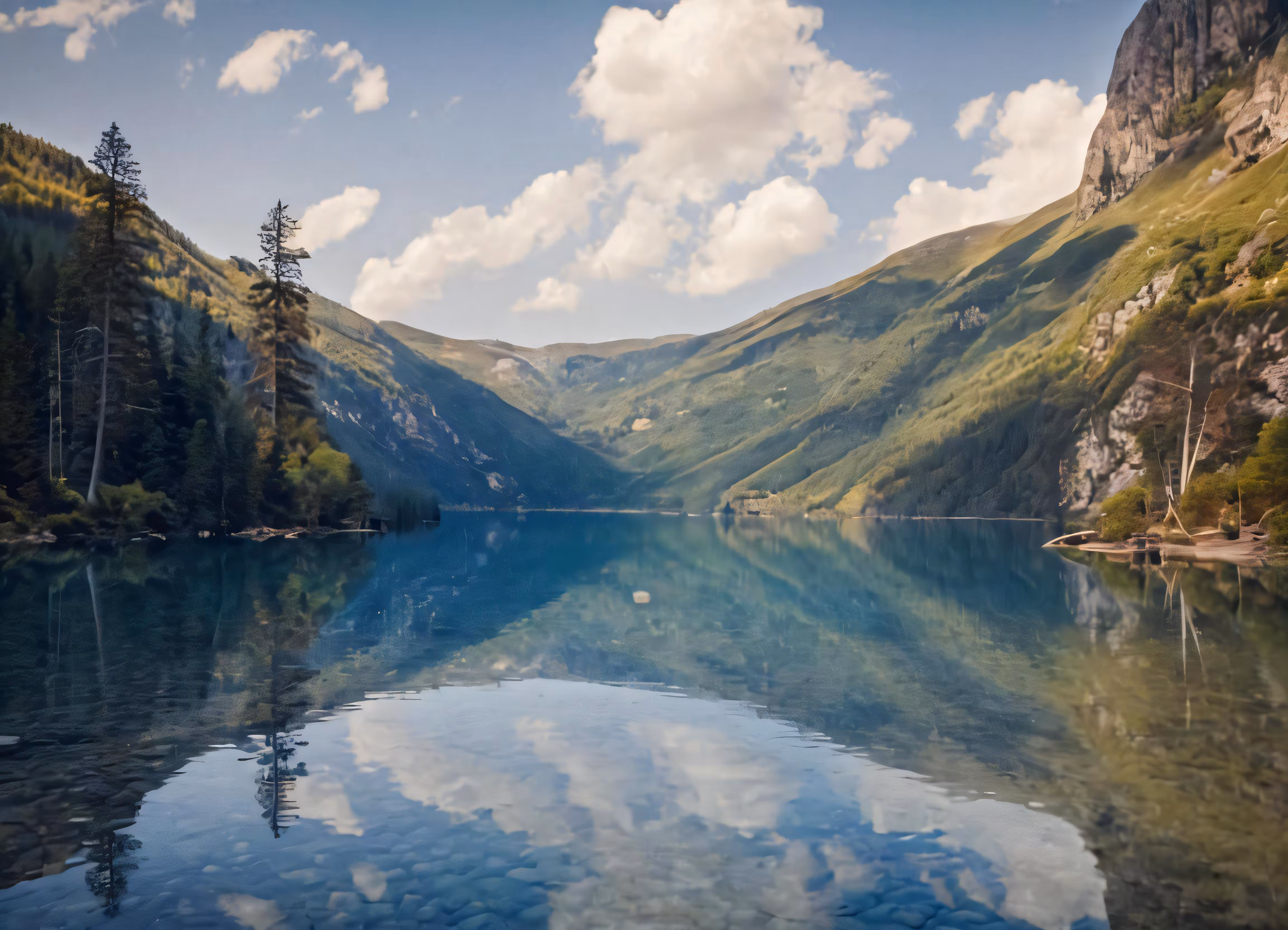High resolution picture, free to use, a large body of water surrounded by mountains