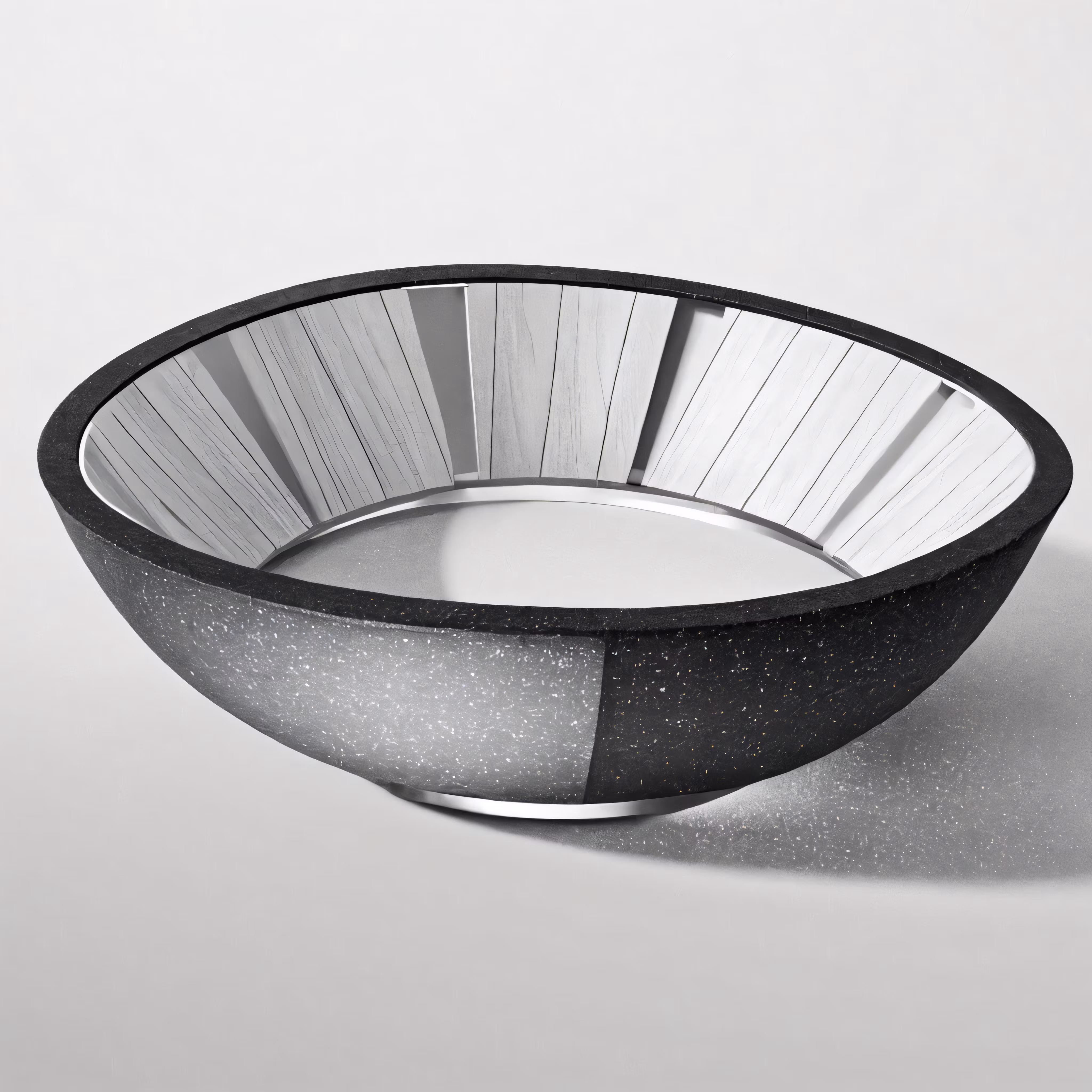 High resolution picture, free to use, a large bowl on a white table with black and white designs