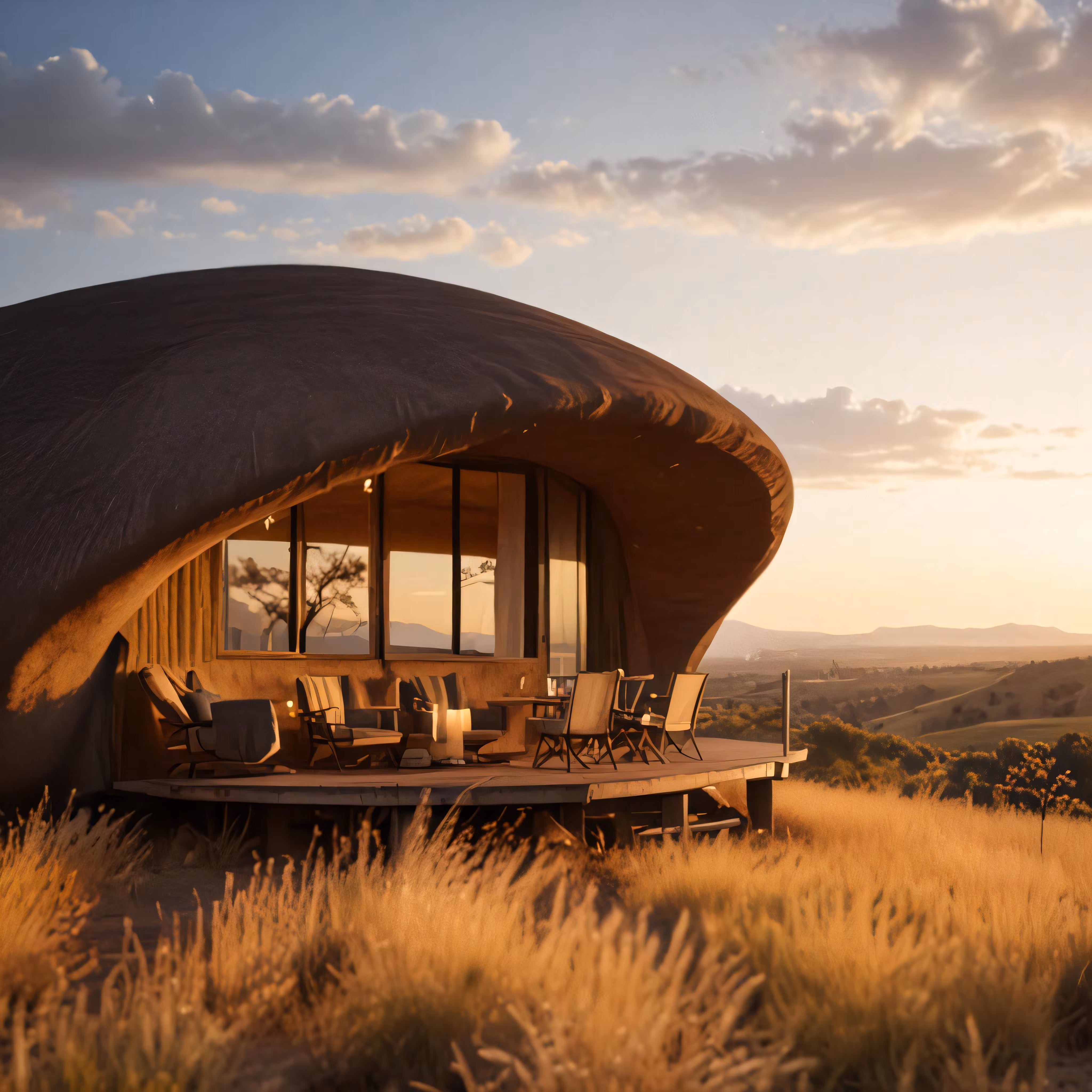 High resolution picture, free to use, a large brown building sitting on top of a field