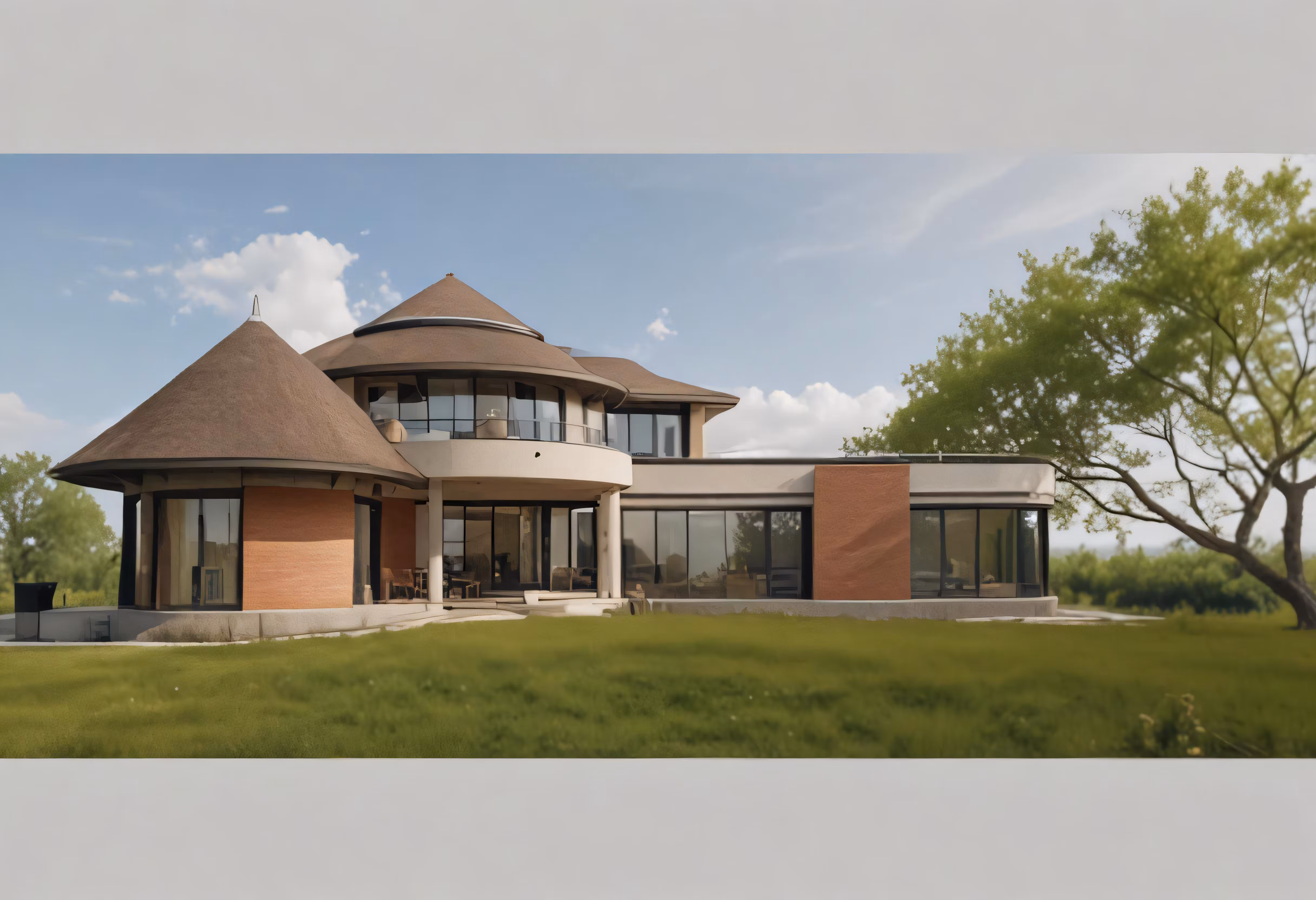 High resolution picture, free to use, a large building sitting on top of a lush green field