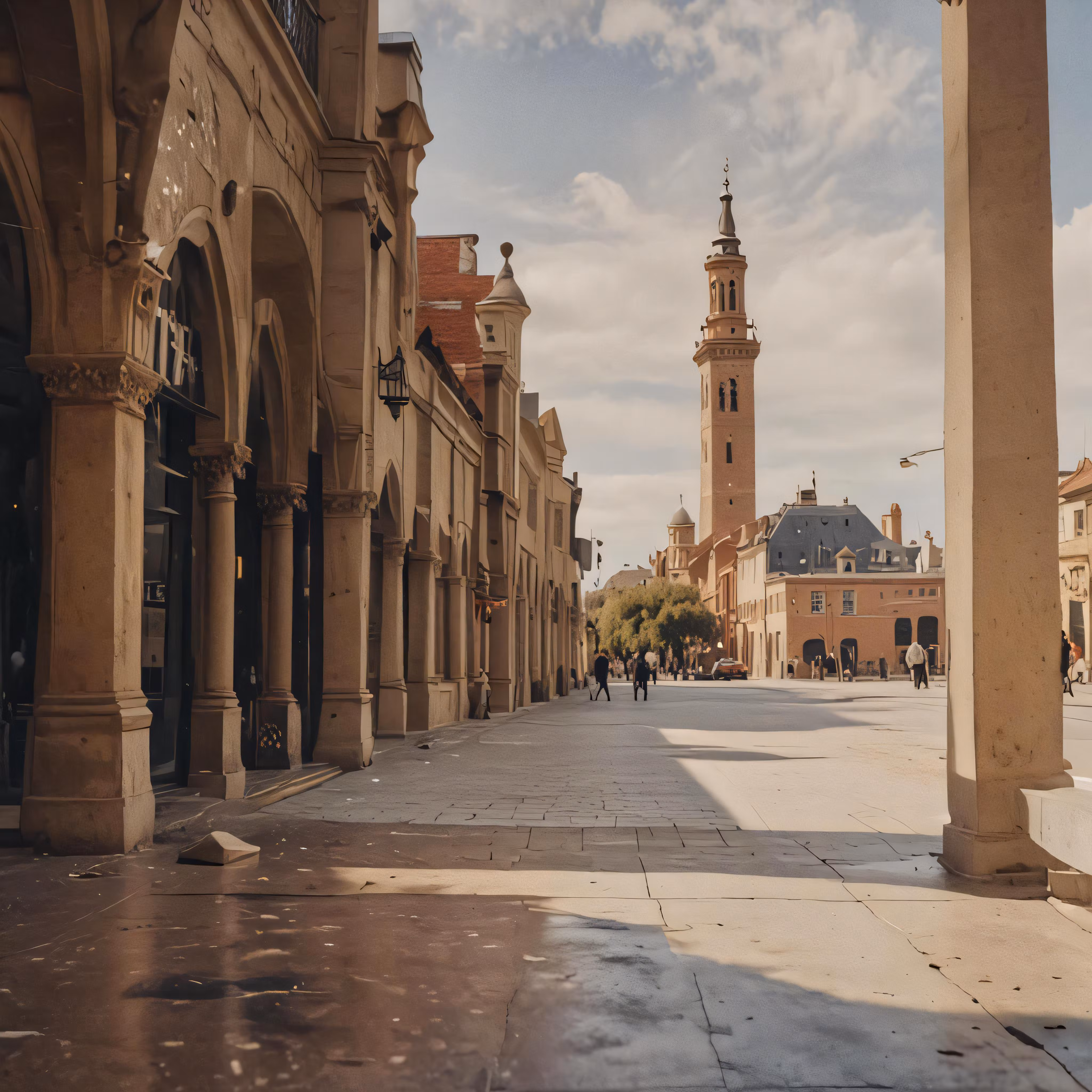 High resolution picture, free to use, a large building with pillars near it and a clock tower in the background