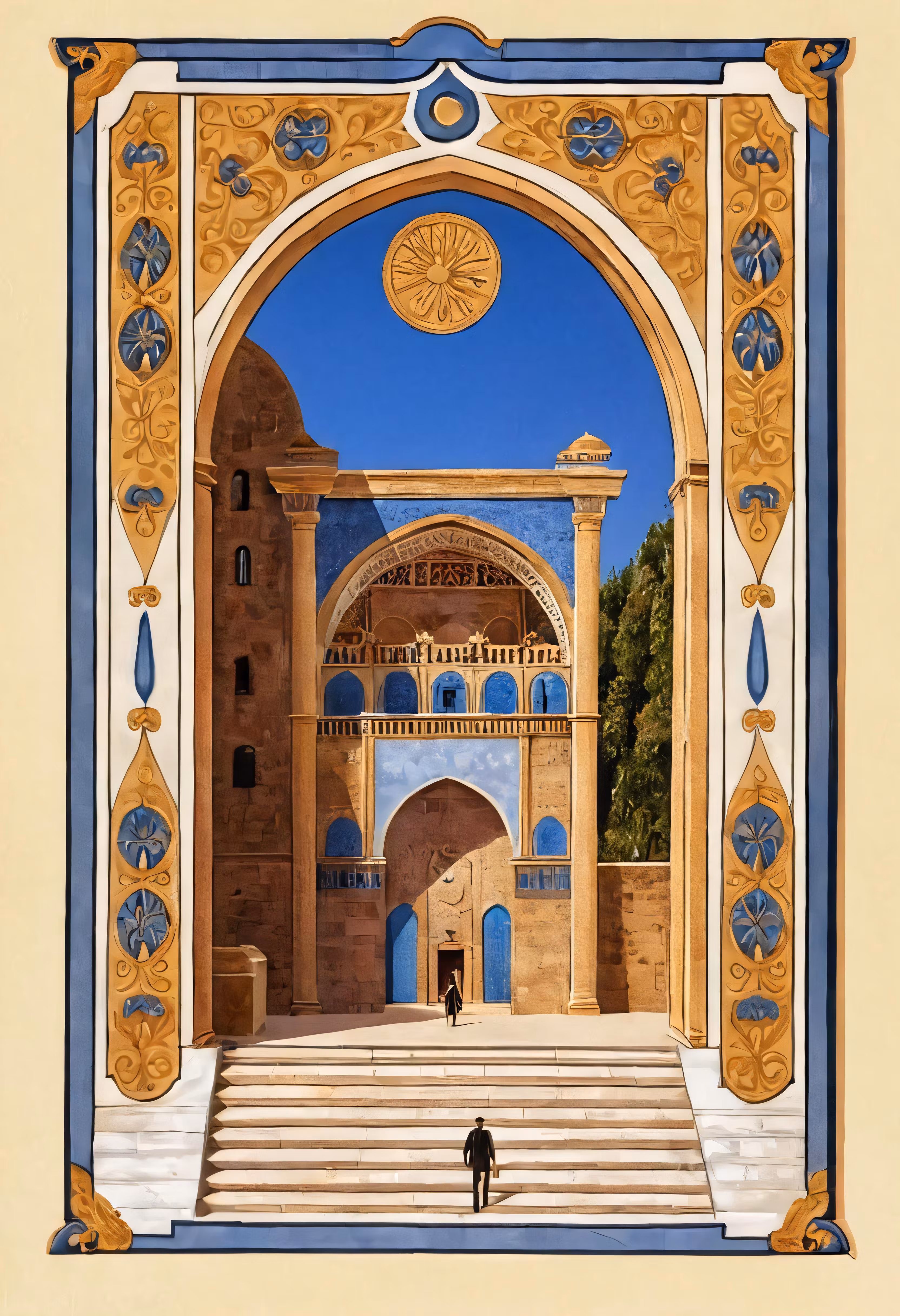 High resolution picture, free to use, a large building with some steps and a man in front of it