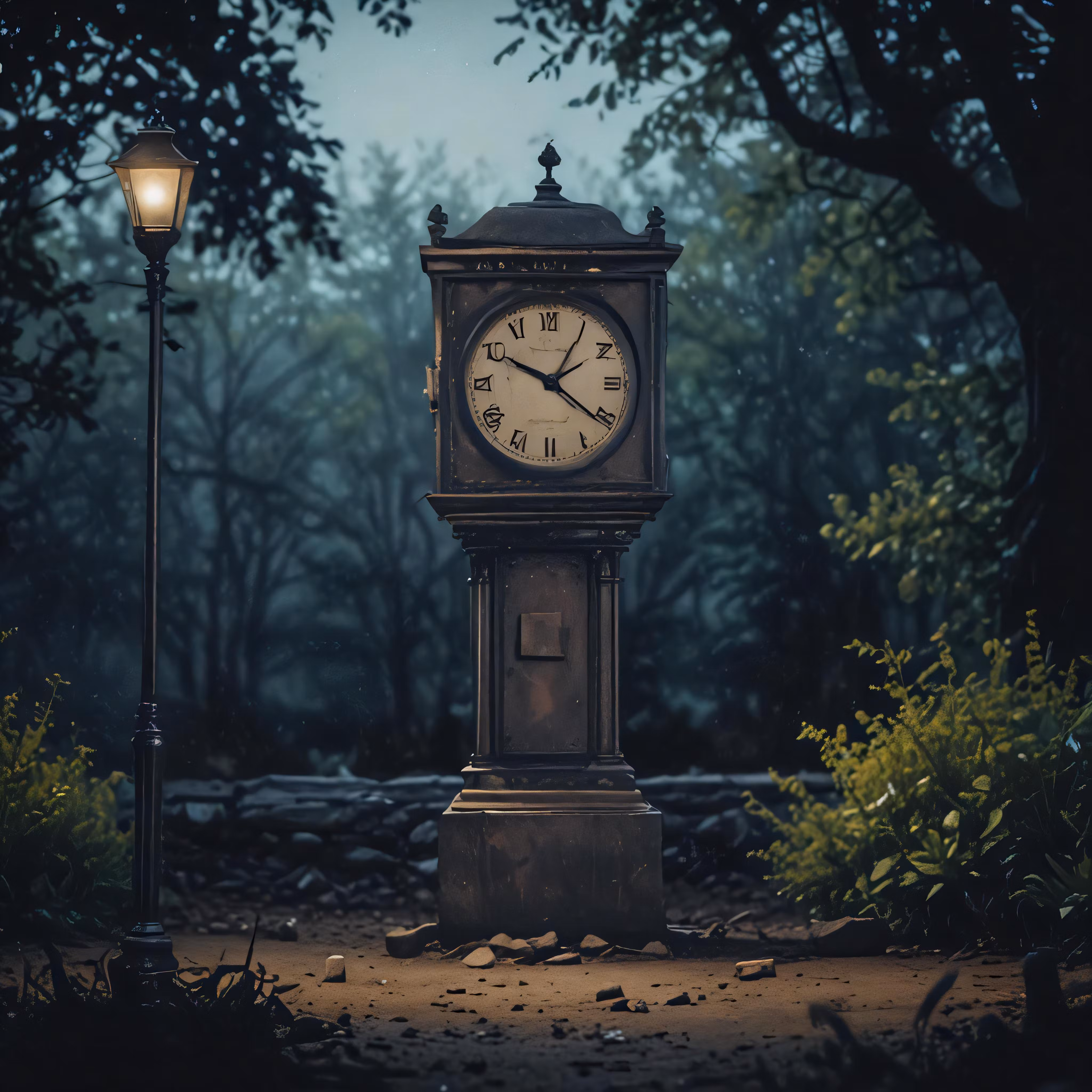 High resolution picture, free to use, a large clock on a sidewalk near a lamp post
