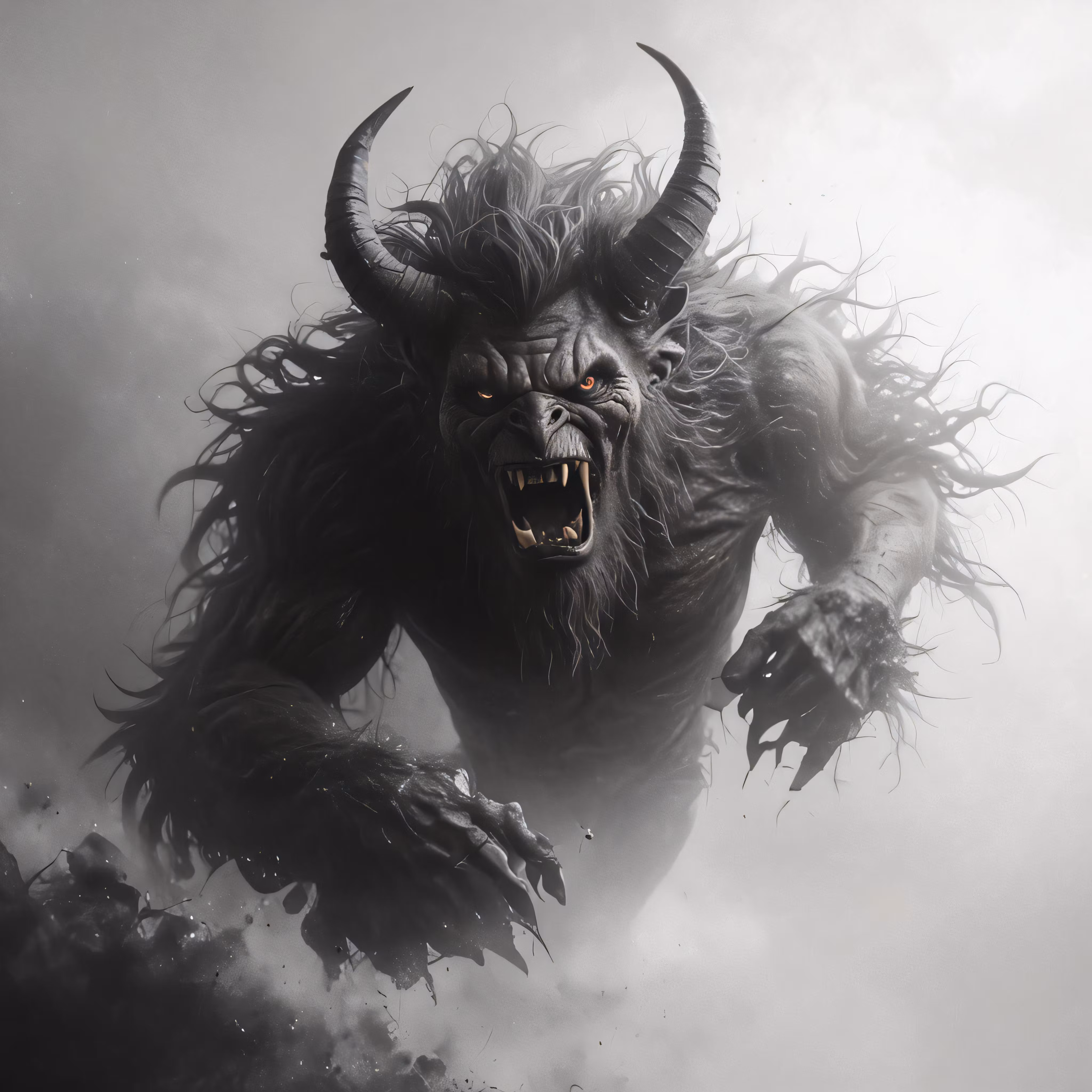 High resolution picture, free to use, a large demon with massive long hair holding onto his hands