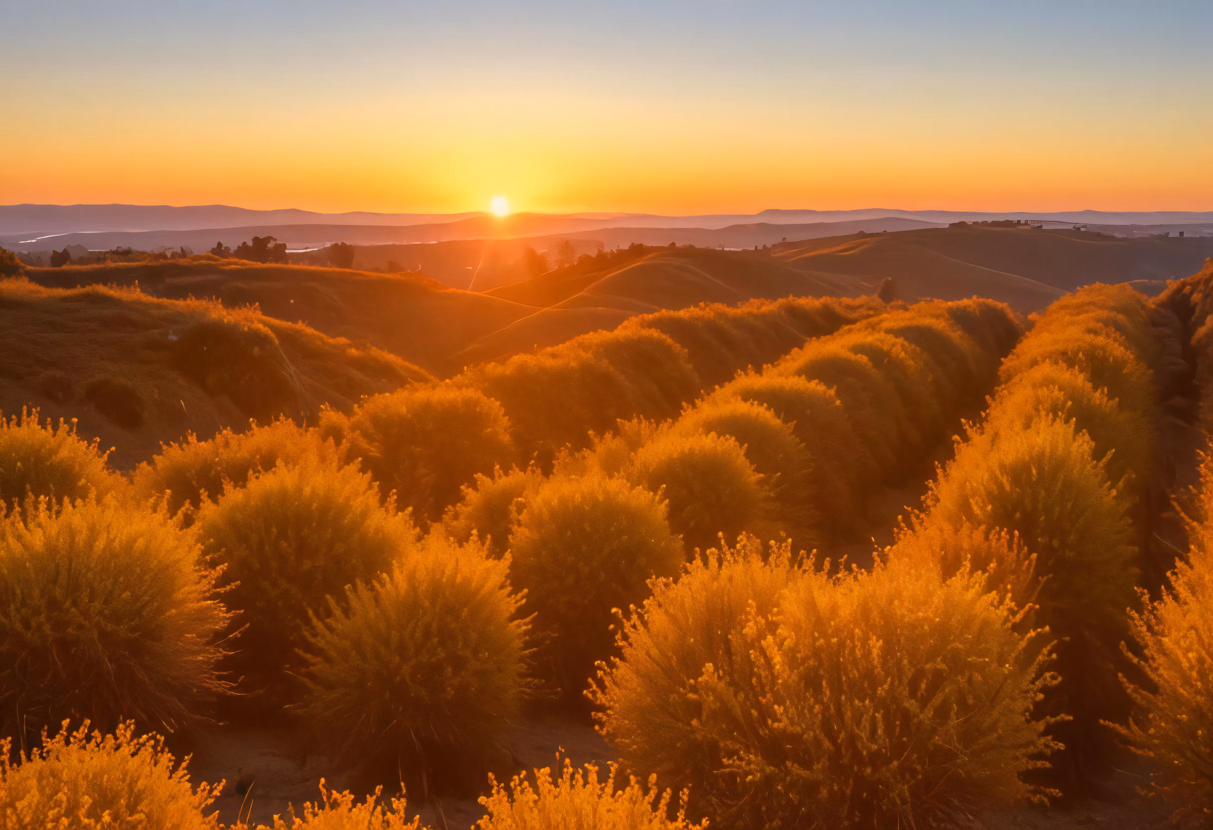 High resolution picture, free to use, a large field filled with green bushes covered in orange