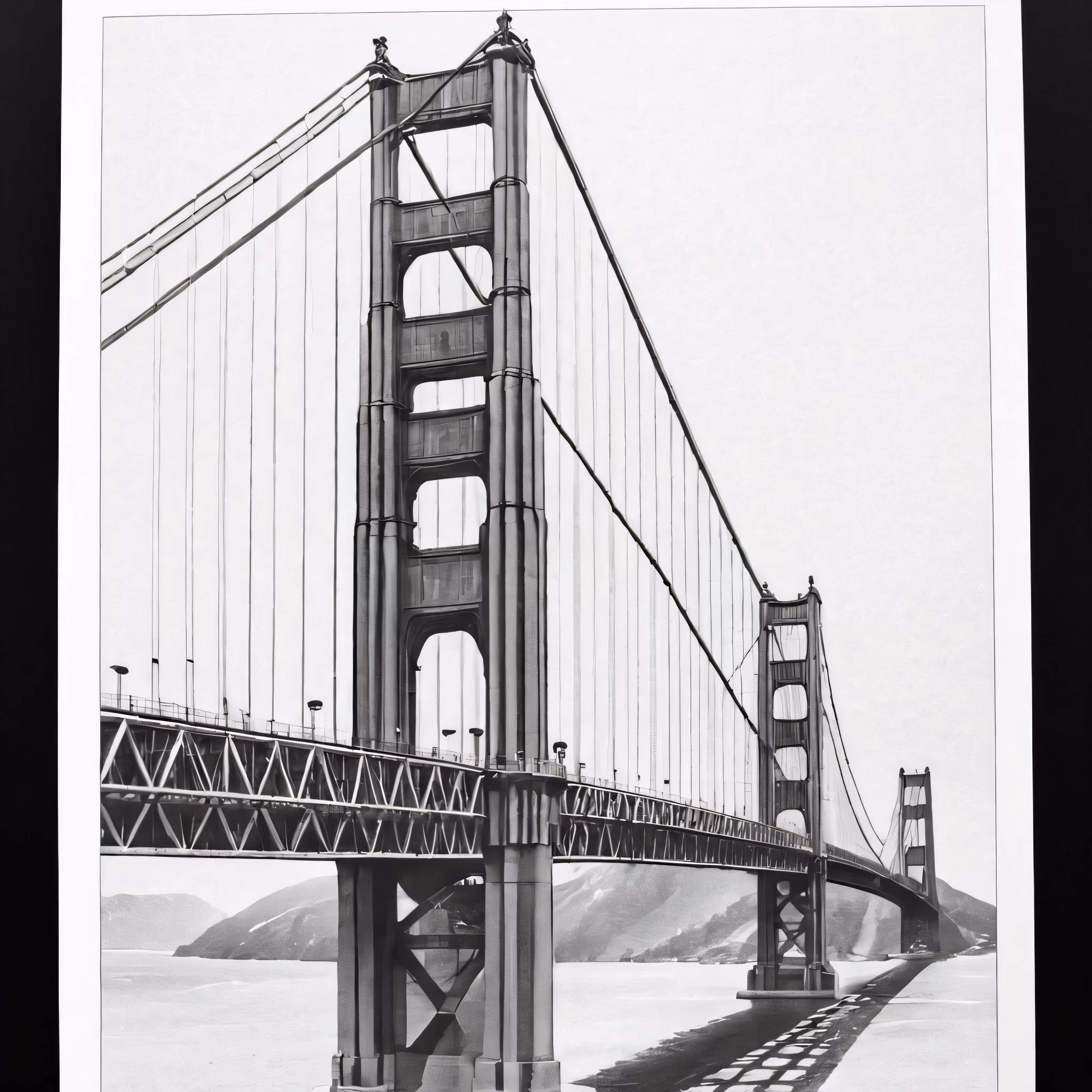 High resolution picture, free to use, a large golden gate bridge on a white and black picture