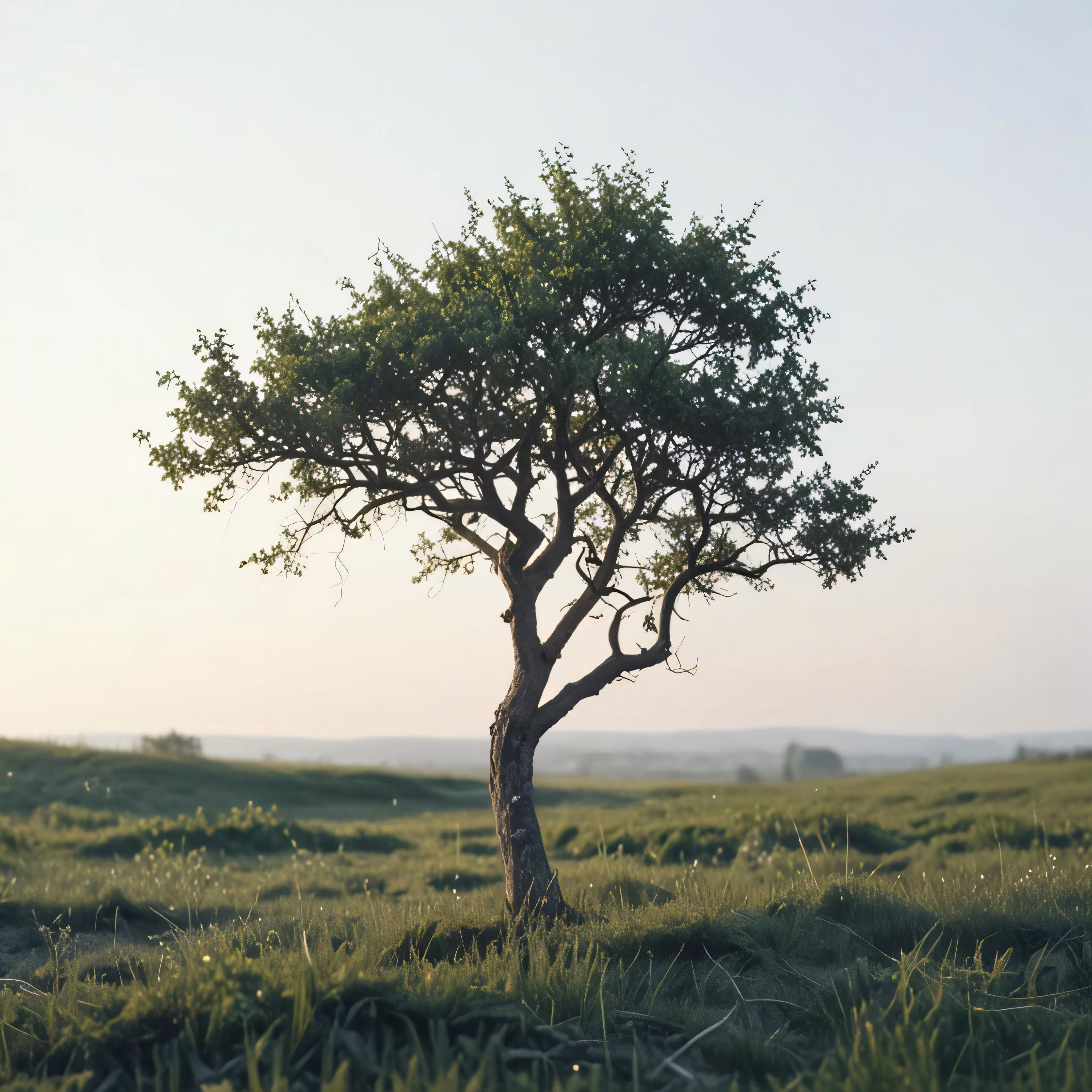 High resolution picture, free to use, a large green field with a single tree