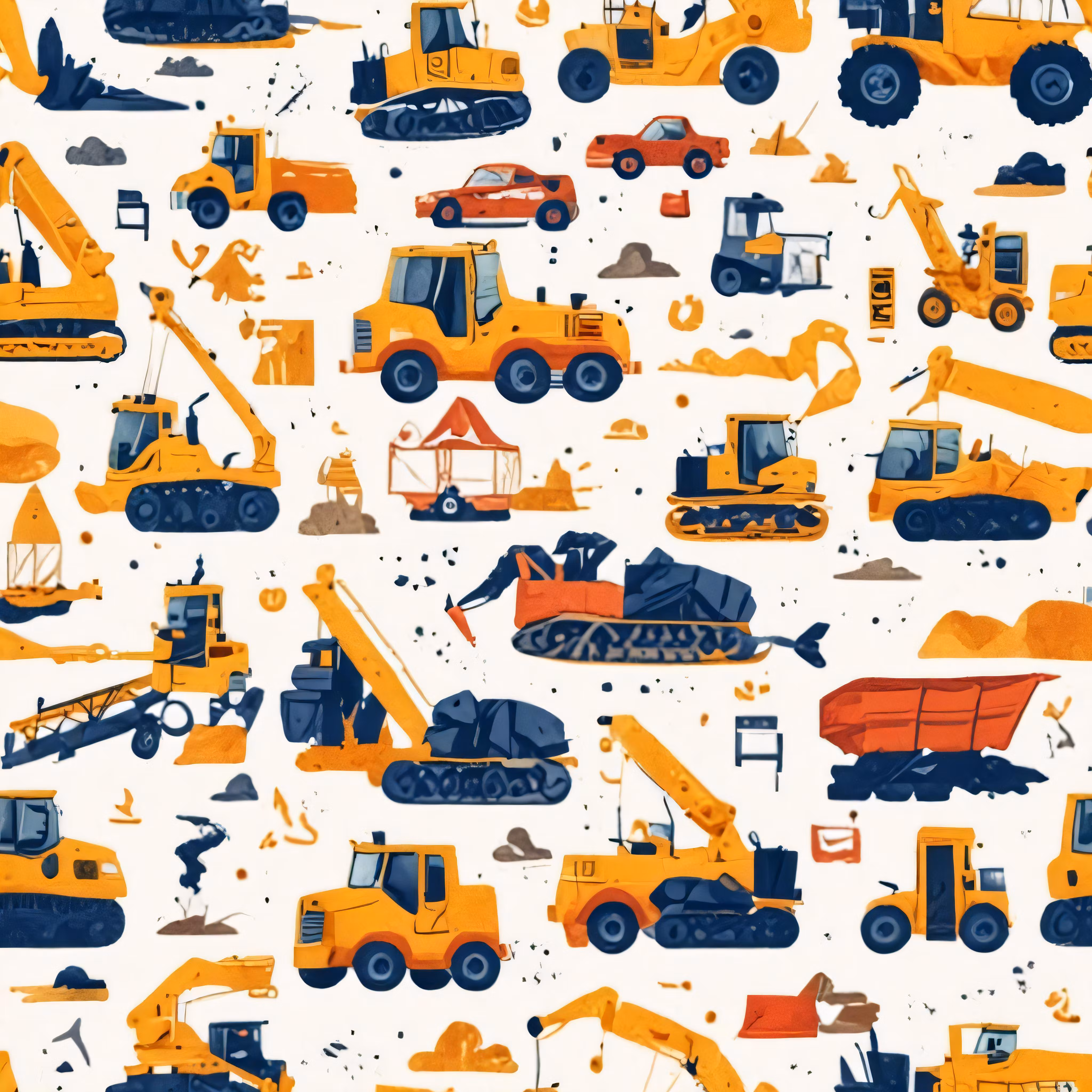 High resolution picture, free to use, a large group of construction vehicles on white background