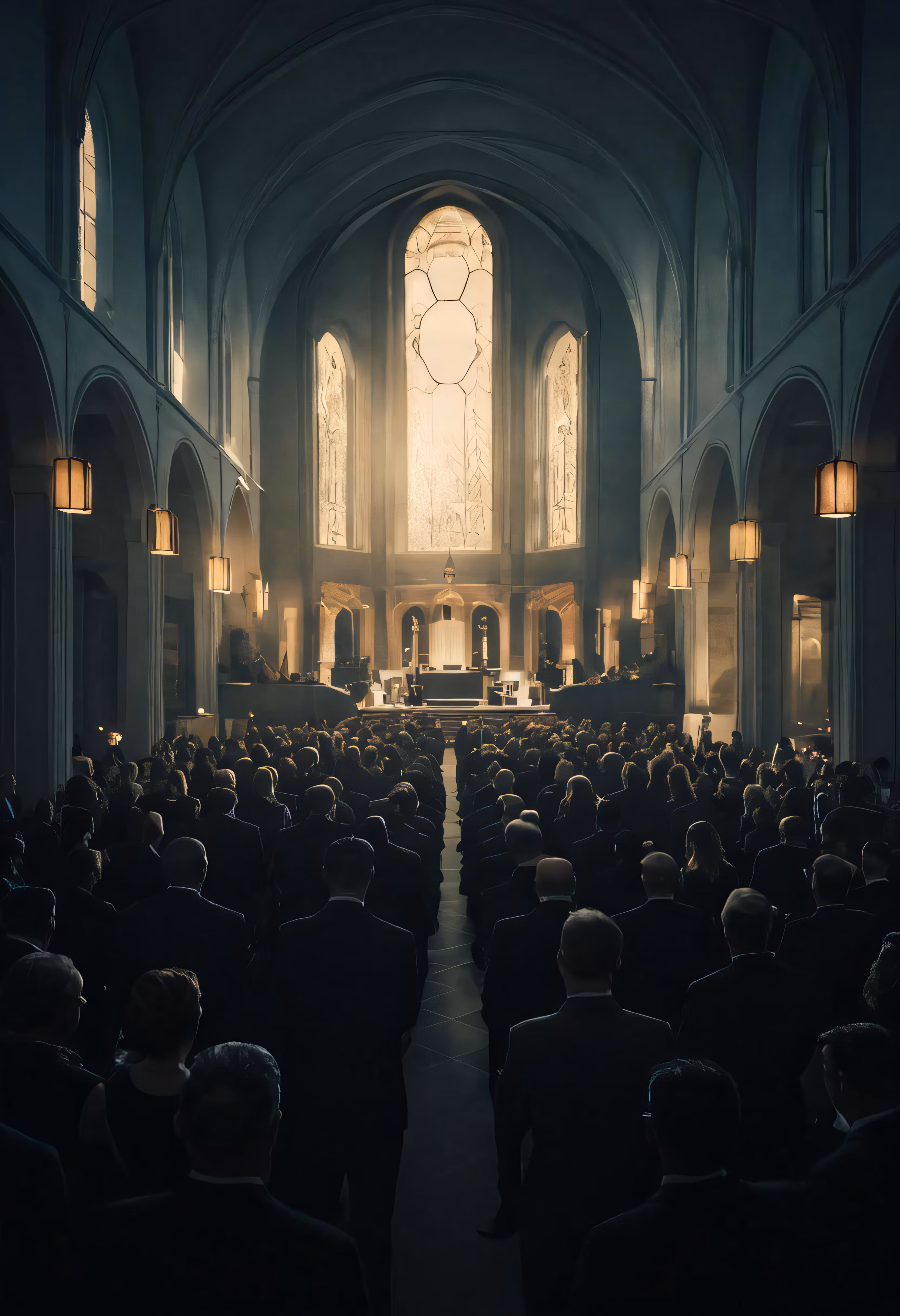 High resolution picture, free to use, a large group of people are standing in a church