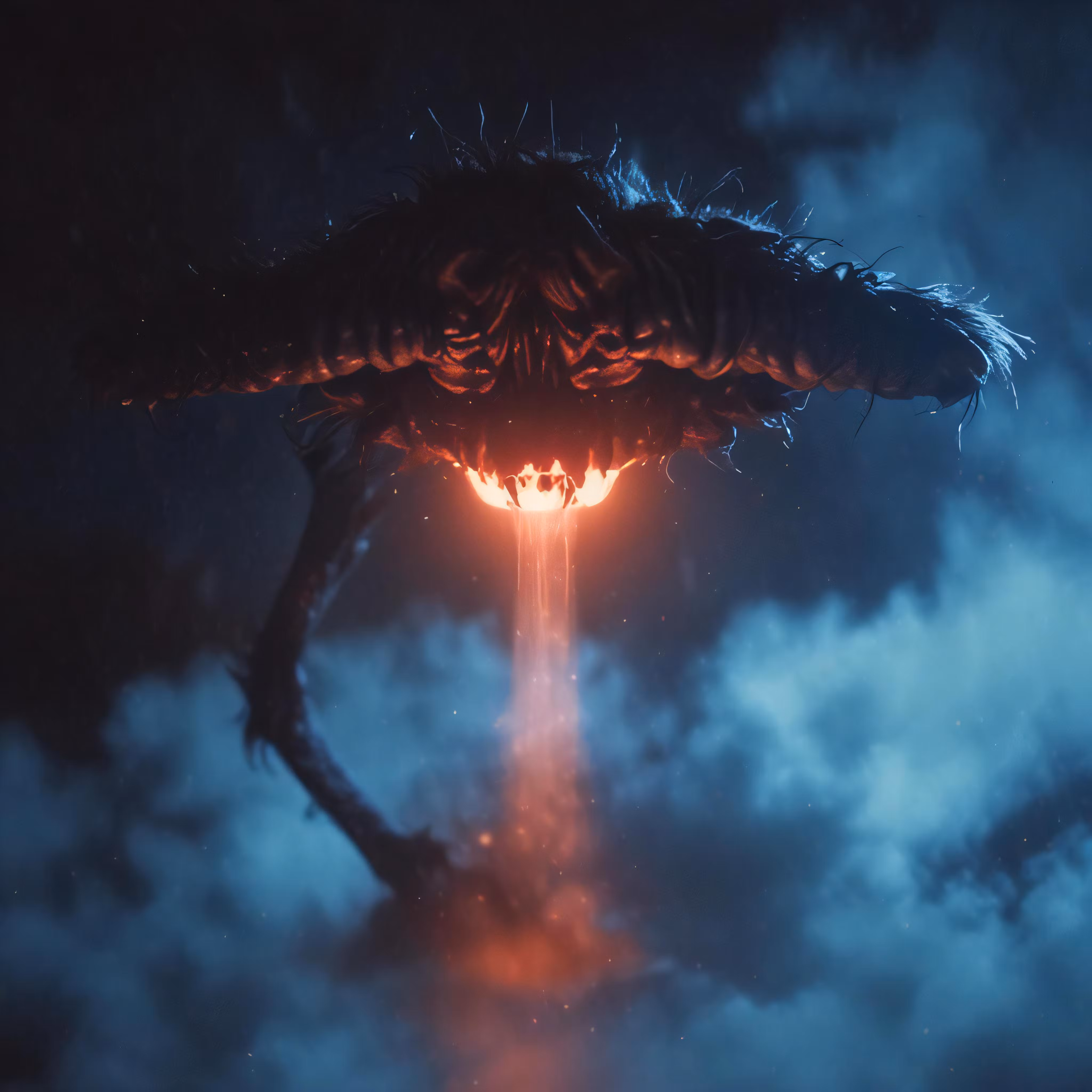 High resolution picture, free to use, a large monster with its wings and legs sticking out is in the clouds