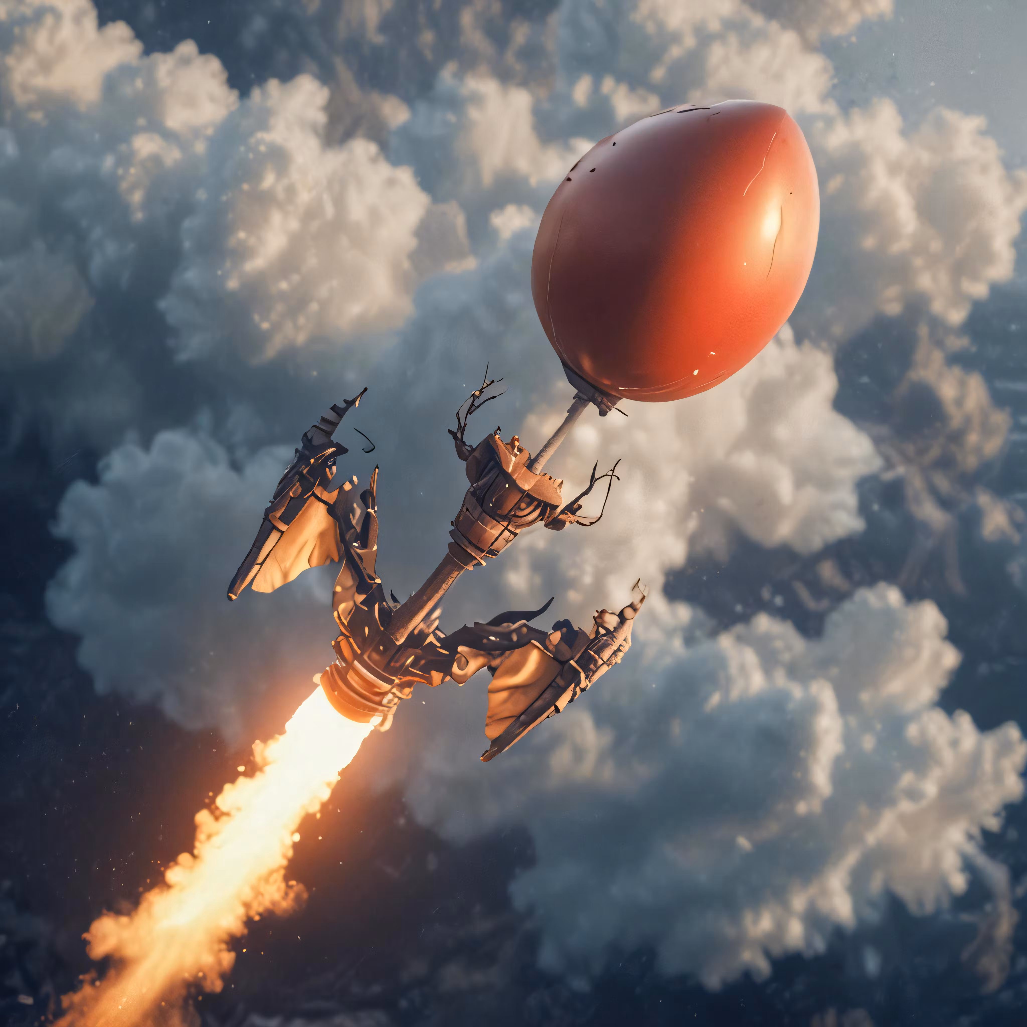 High resolution picture, free to use, a large red balloon is flying in the sky