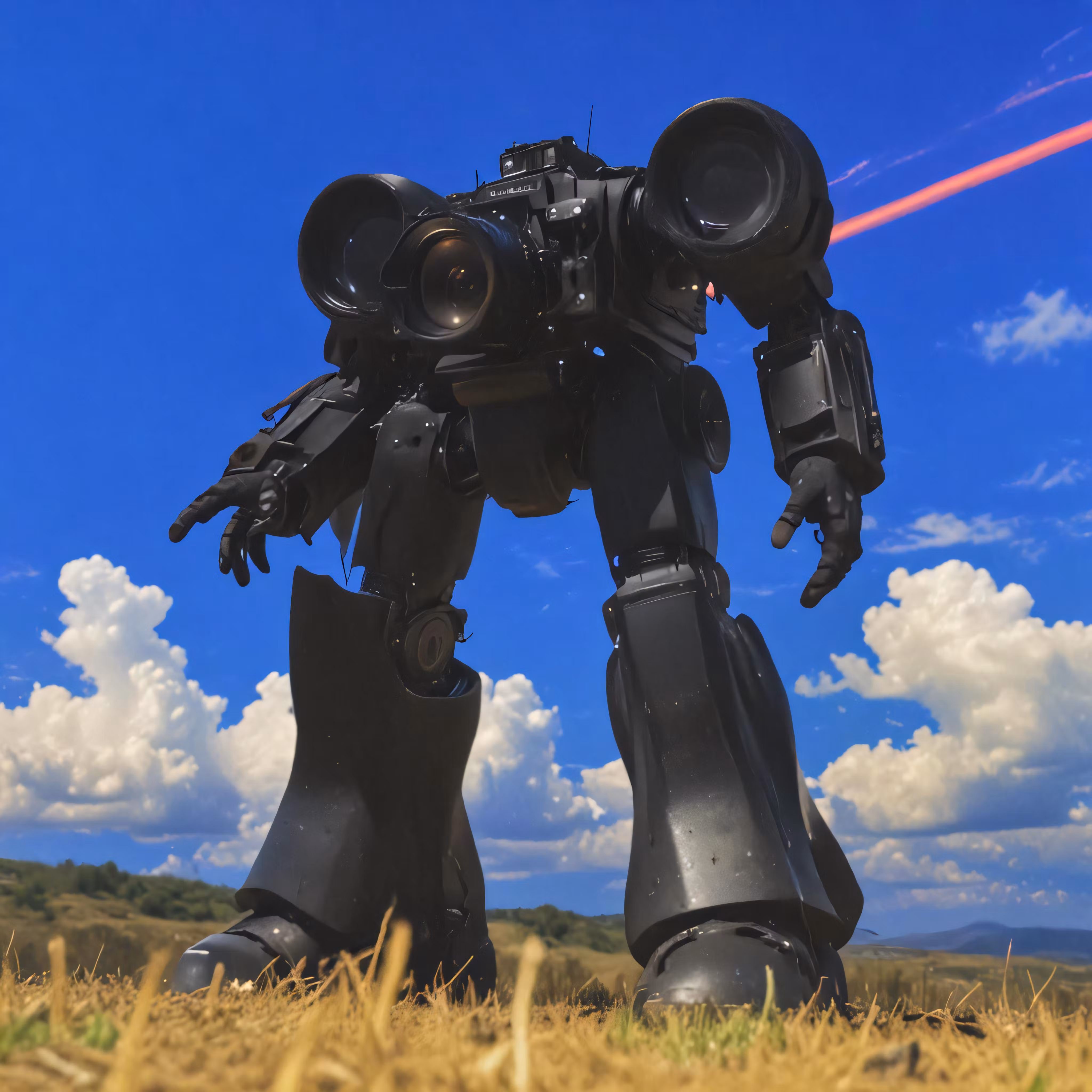 High resolution picture, free to use, a large robot is standing in a field