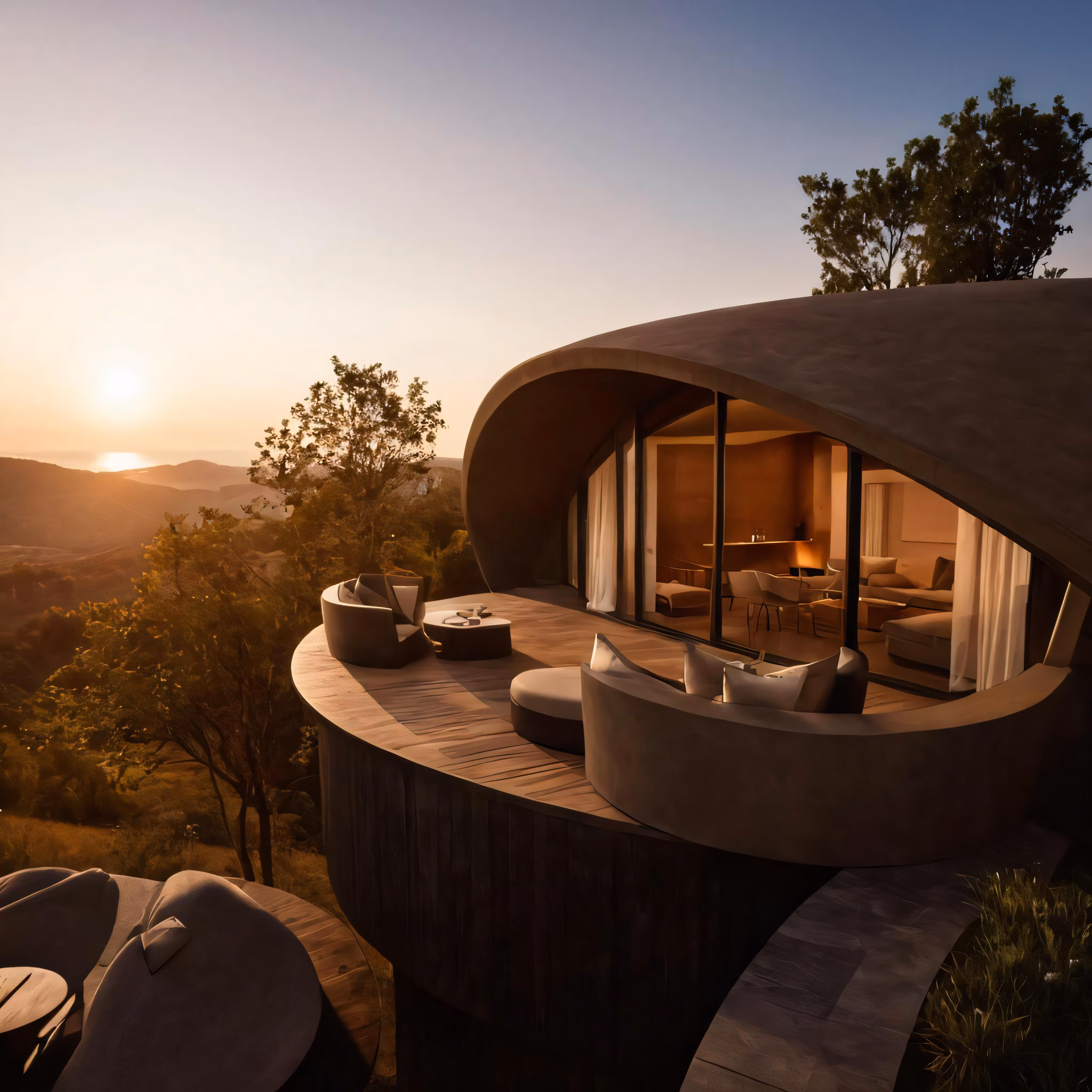 High resolution picture, free to use, a large round bed in the middle of an outdoor area