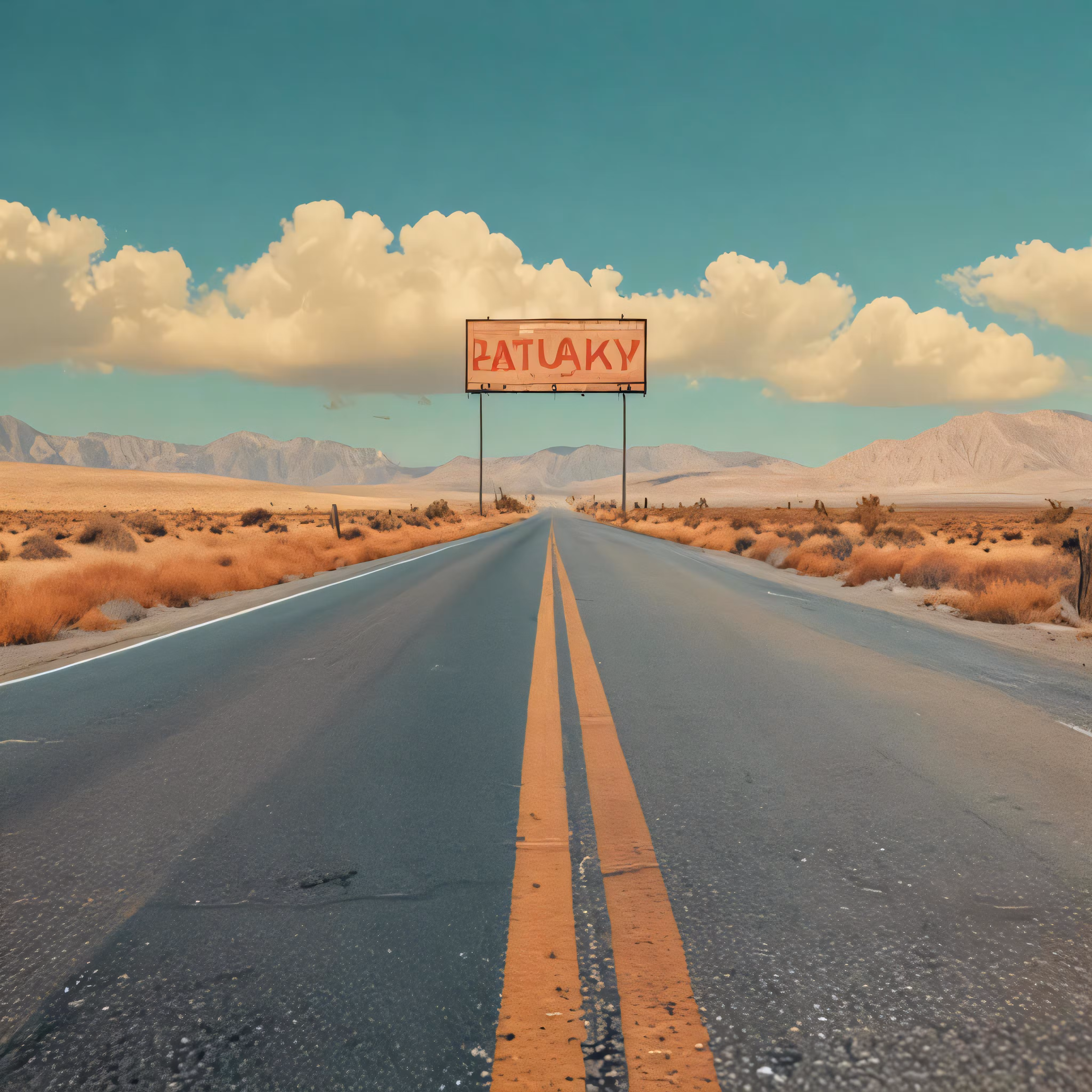 High resolution picture, free to use, a large sign stands out on the deserted road